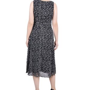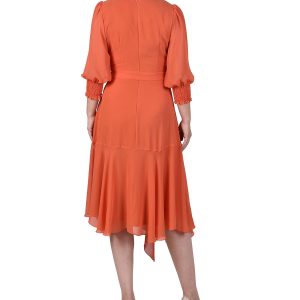 Petite Long Sleeve Clip Dot Chiffon Dress With Smocked Waist