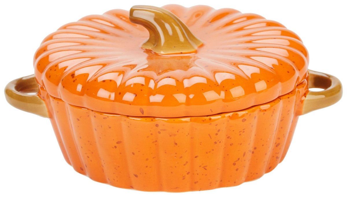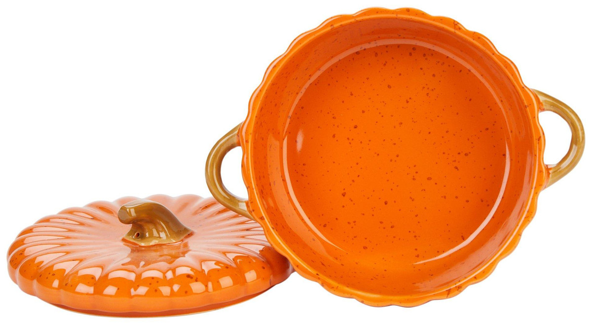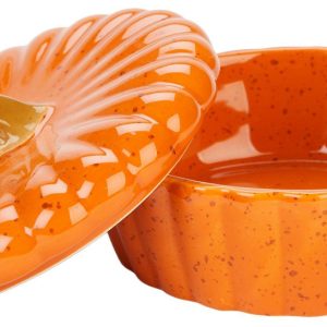 Elevate fall presentations with the 10 Strawberry Street 8 in Ceramic Pumpkin with Lid. Finished in speckled orange, it features side handles and a removable top that lifts easily by the sculpted stem. Ideal for serving soups, sides or festive treats at seasonal gatherings. Microwave, oven and dishwasher safe for convenient use and cleanup.