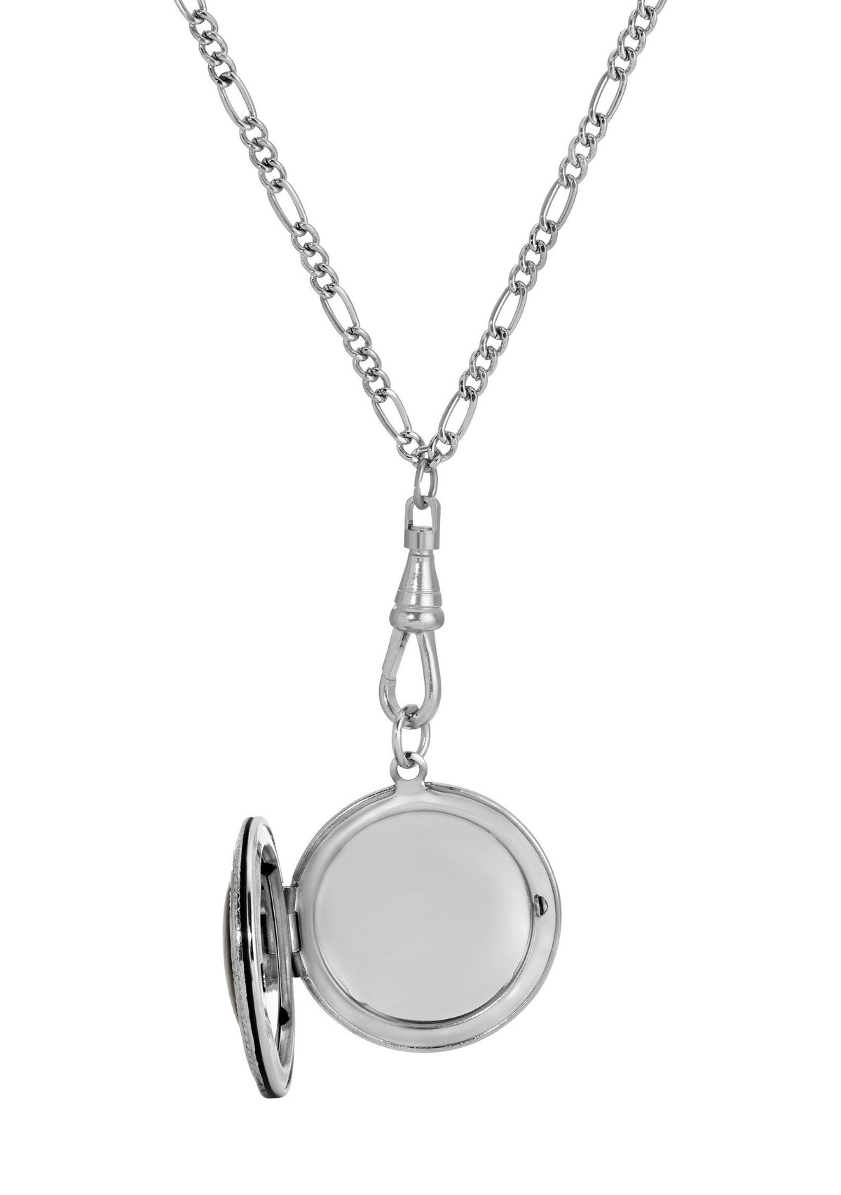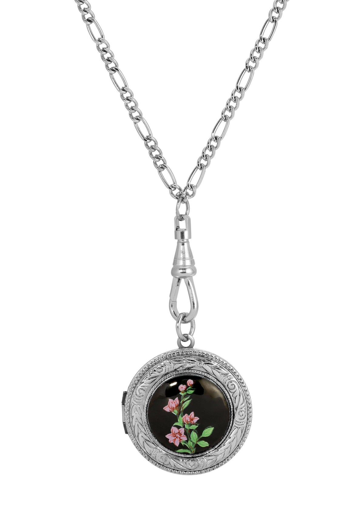 Keep your loved ones close with this beautifully designed round floral locket necklace. This special piece is perfect for storing treasured memories, combining vintage charm with a feminine, elegant touch. Its unique floral design makes it a standout accessory, adding a touch of timeless beauty to any outfit. Length 28 in., width 31 mm.
