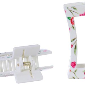 The 1928 Jewelry Crowned Princess Floral Cameo Hair Barrette features two elegant crowned princesses on each end, framing an intricate floral design. At the center, an oval flower cameo stone adds a touch of vintage charm and sophistication. Length 3.25 in., width 26mm.