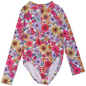 This Btween 2-piece set features a floral print one-piece rash guard with a tiered skirt for a stylish and playful look. Made from a spandex and polyester blend, it offers breathability, stretch, and all-day comfort. Perfect for swimming and sun protection, this set combines fashion and function, making it a great choice for active little girls!