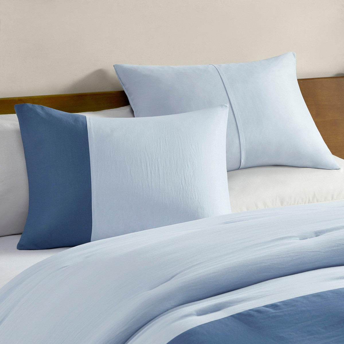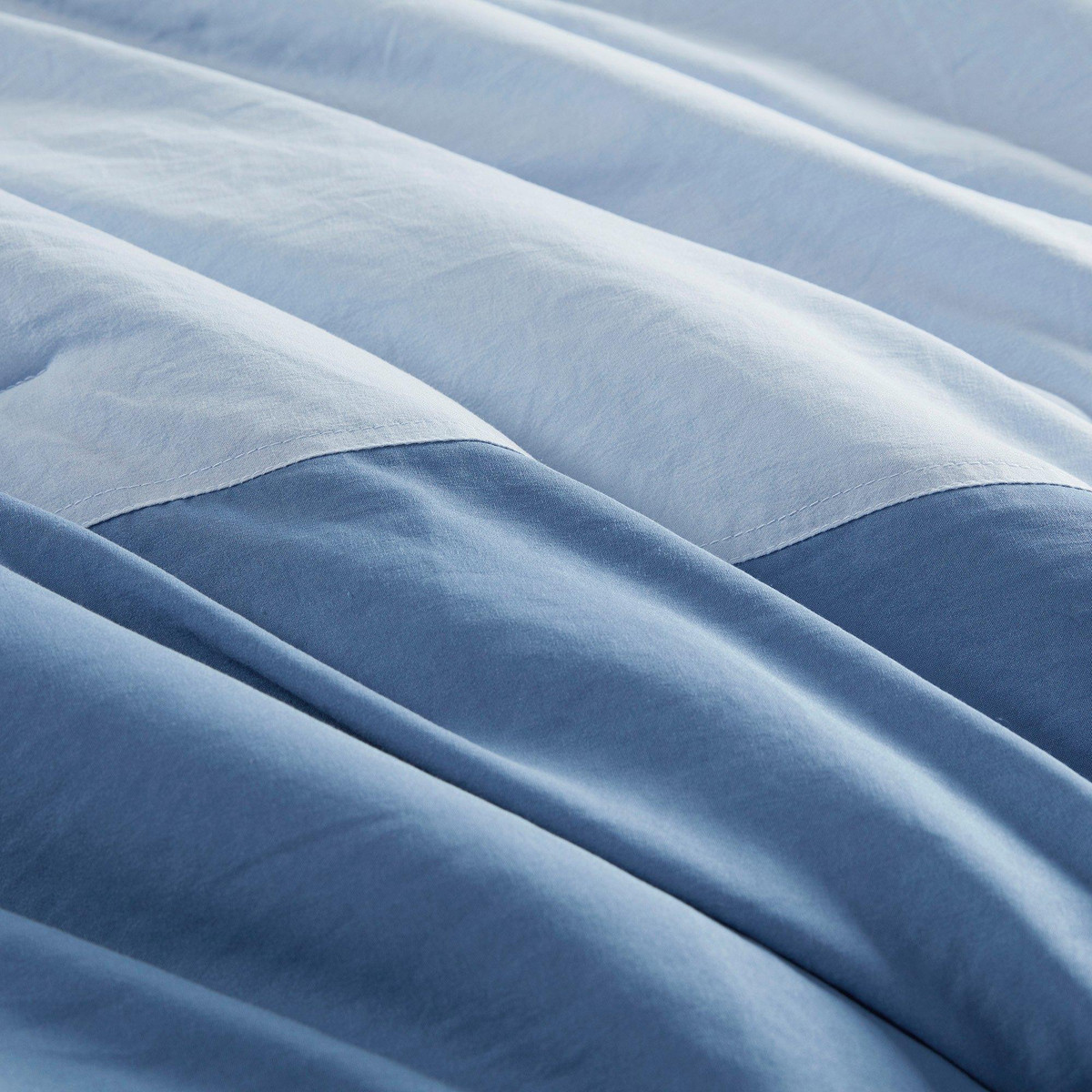 Elevate your bedroom with the 510 Design Miro Soft Washed Color Block Comforter Set. Crafted from silky soft, pre-washed fabric, this cozy bedding features a stylish two-tone color block design and a solid reverse. Heavier than standard comforters, it offers plush comfort and soothing warmth for a restful nights sleep. Perfect for modern and minimalist décor.