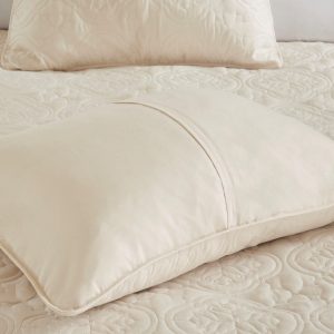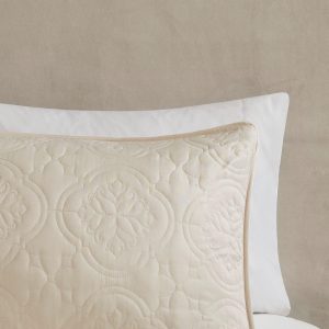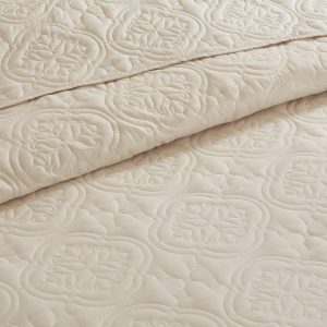 510 Design Oakly 3 Piece Reversible Bedspread Set. Includes: 1 Beadspread – Full/Queen (102 in x 118 in) or King/Cal King (120 in x 118 in) and 2 Shams. Coverlet/Sham: microfiber solid fabric face and back, stitch quilting, poly fill.