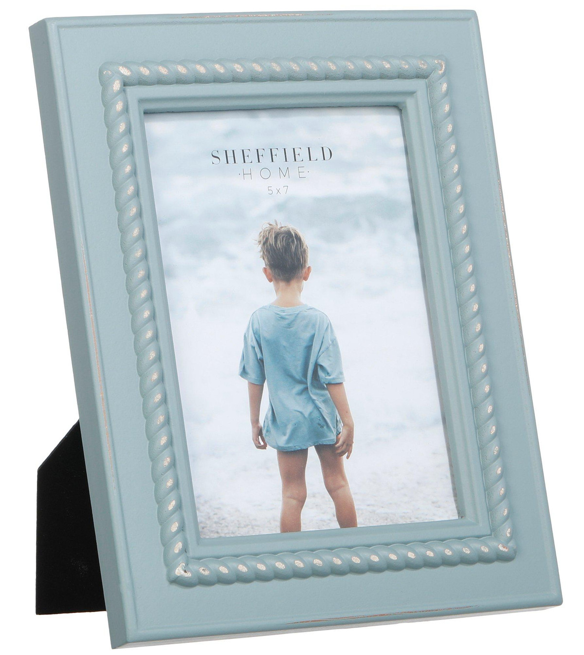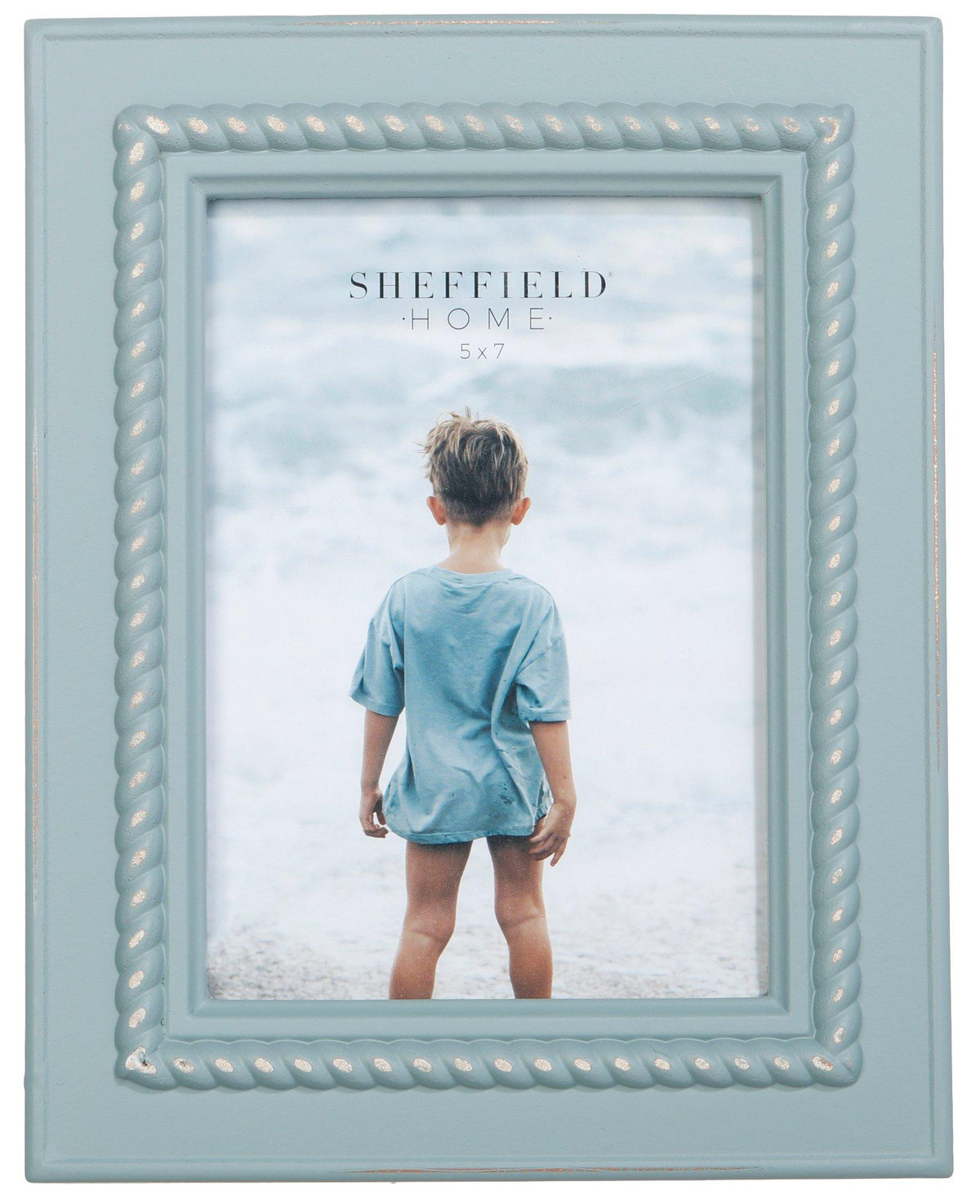 Showcase your favorite photos with this Blue Rope Photo Frame, beautifully made of durable resin. The unique design adds a touch of modern elegance to any room, while the durable resin construction ensures lasting beauty. Perfect for both contemporary and traditional decor styles, this frame combines functionality with artistic flair, making it a standout piece in your home. Measures approximately: Frame – 7.5 in x 9.5 in x 1 in, Opening – 5 in x 7 in.