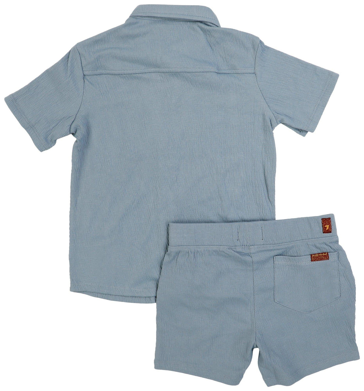 Elevate your summer wardrobe with this Coordinated 2-Piece Set, designed for effortless style and comfort. This set includes a buttoned short sleeve tee featuring double chest pockets for a touch of utility and flair. Paired with matching shorts that boast double side pockets, a back pocket, and an elastic waistband, this ensemble ensures practicality and ease.