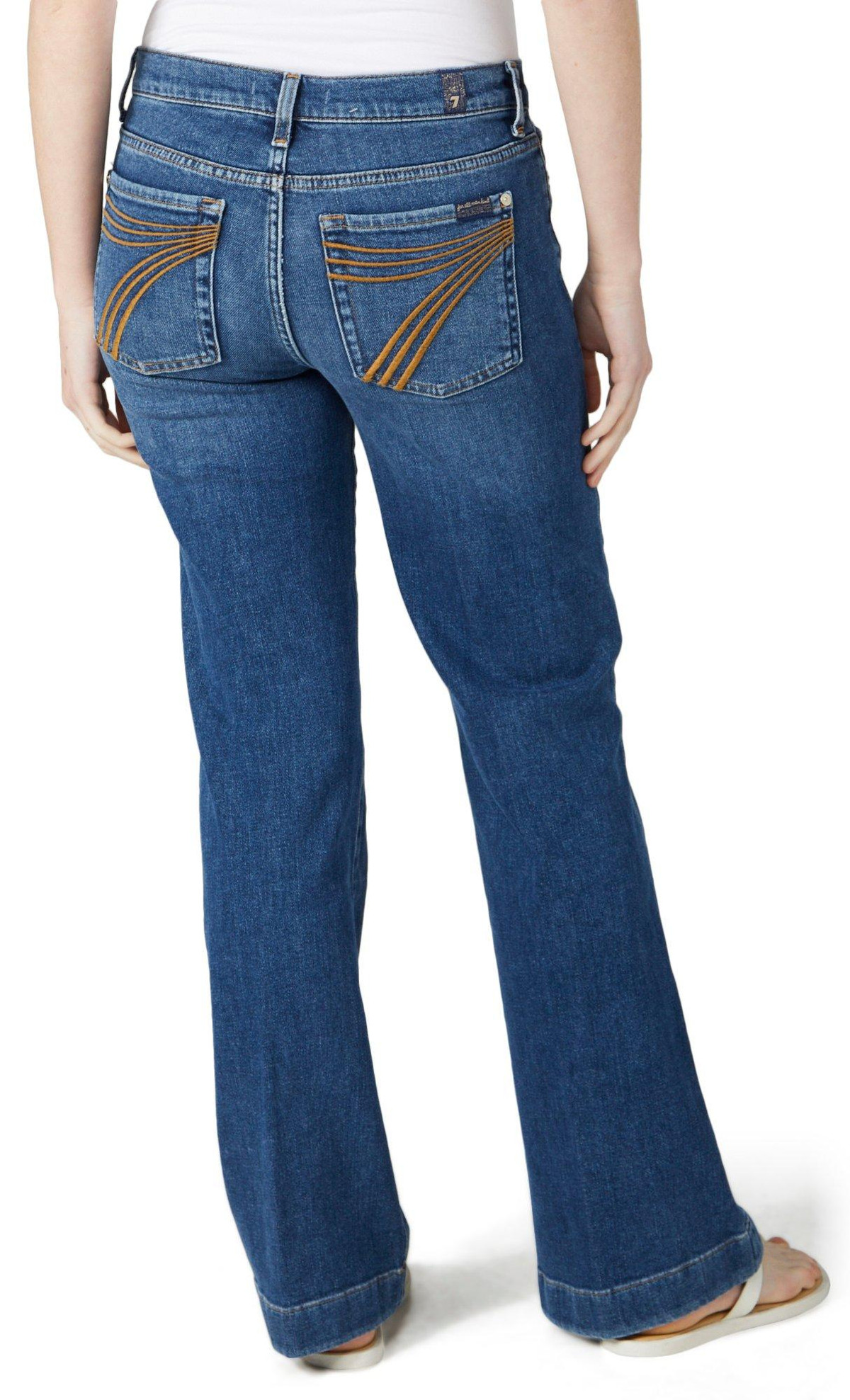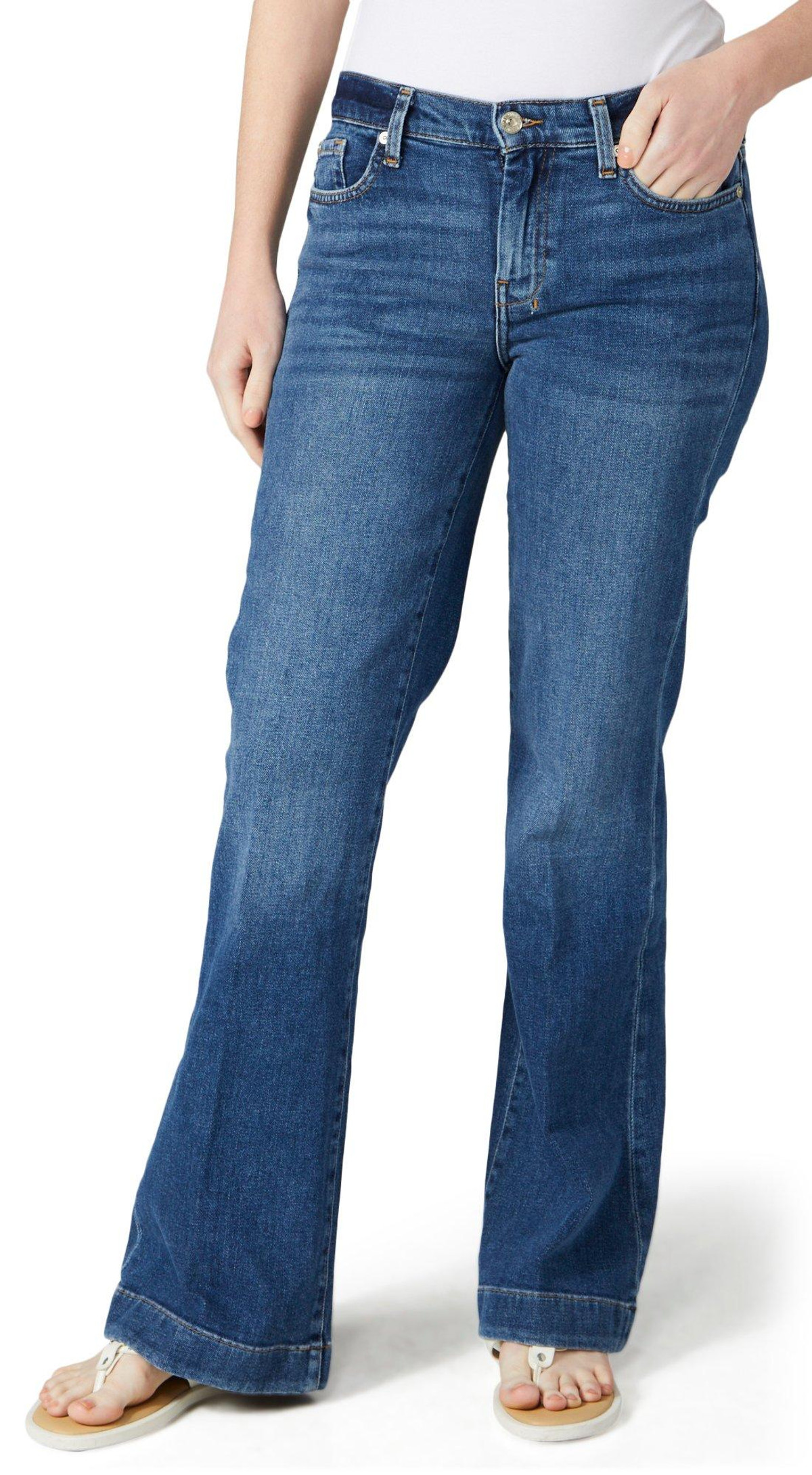 This signature trouser jean features a wide leg with a subtle flare for a long, lean lineand the Tailorless version offers a shorter inseam while keeping the silhouette intact. The medium blue wash is artfully faded for extra dimension. Inseam measures approximately 32 in. Fabrication is 98% Cotton, 2% Spandex.