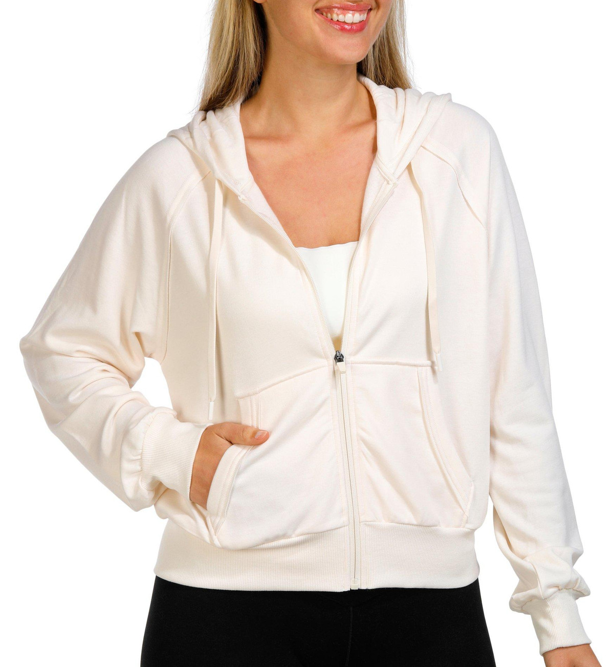 Stay cozy and active in the Active Brushed Terry Zip Up Jacket. With a soft solid color, long sleeves, hooded drawstring neckline, zip up front, and side pockets, it is the perfect blend of comfort and function for layering on the go.
