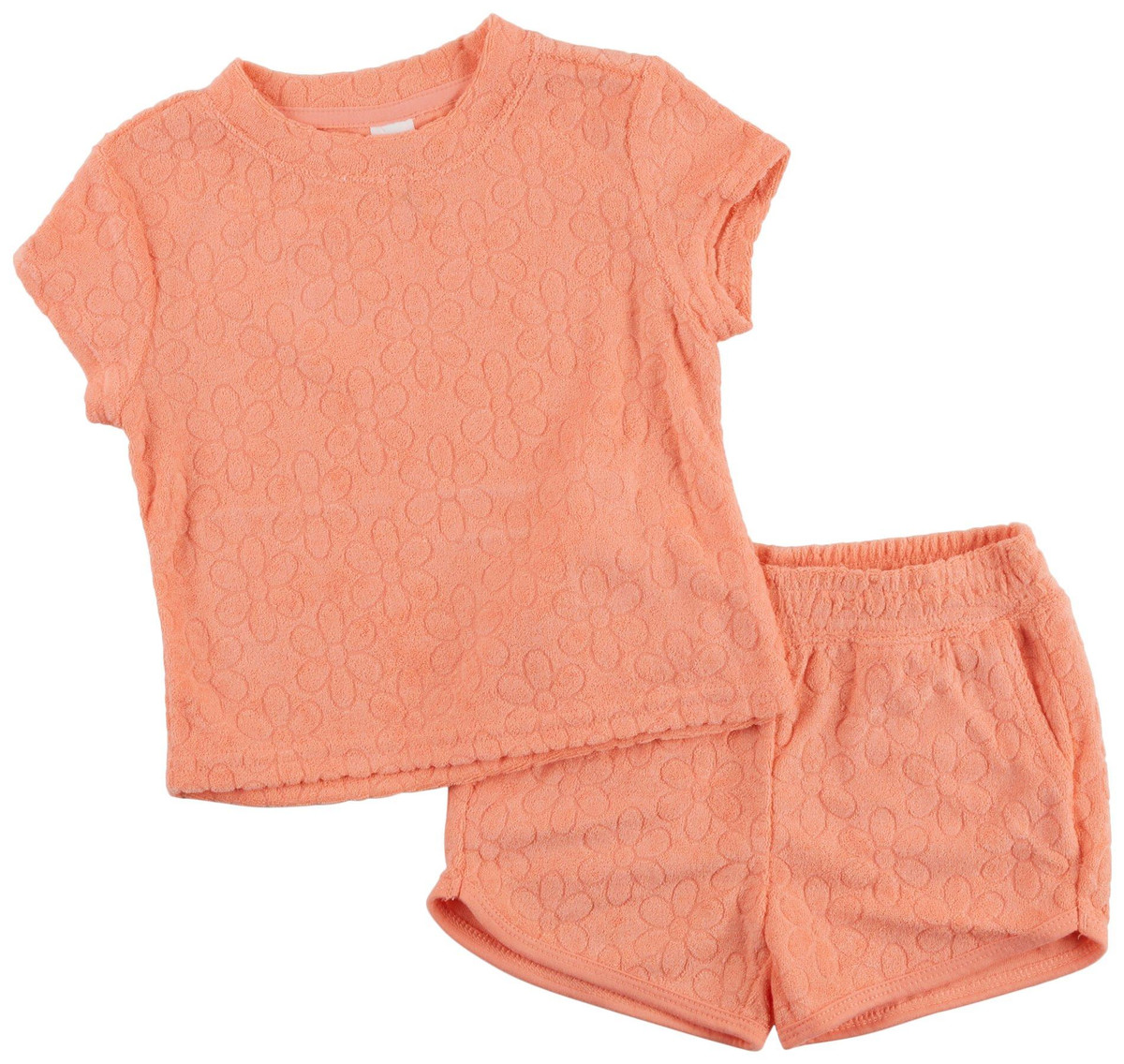 90 Degree Toddler Girl 2 Pc Terry Embossed Short Set