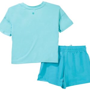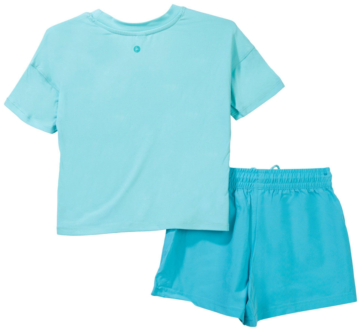The Big Girls Active 2 Pc Shorts Set is a sporty and stylish choice for active days. It features a short sleeve pocket tee for breathable comfort and pull on shorts with front flap pockets and a drawstring waistband, blending function with everyday ease.