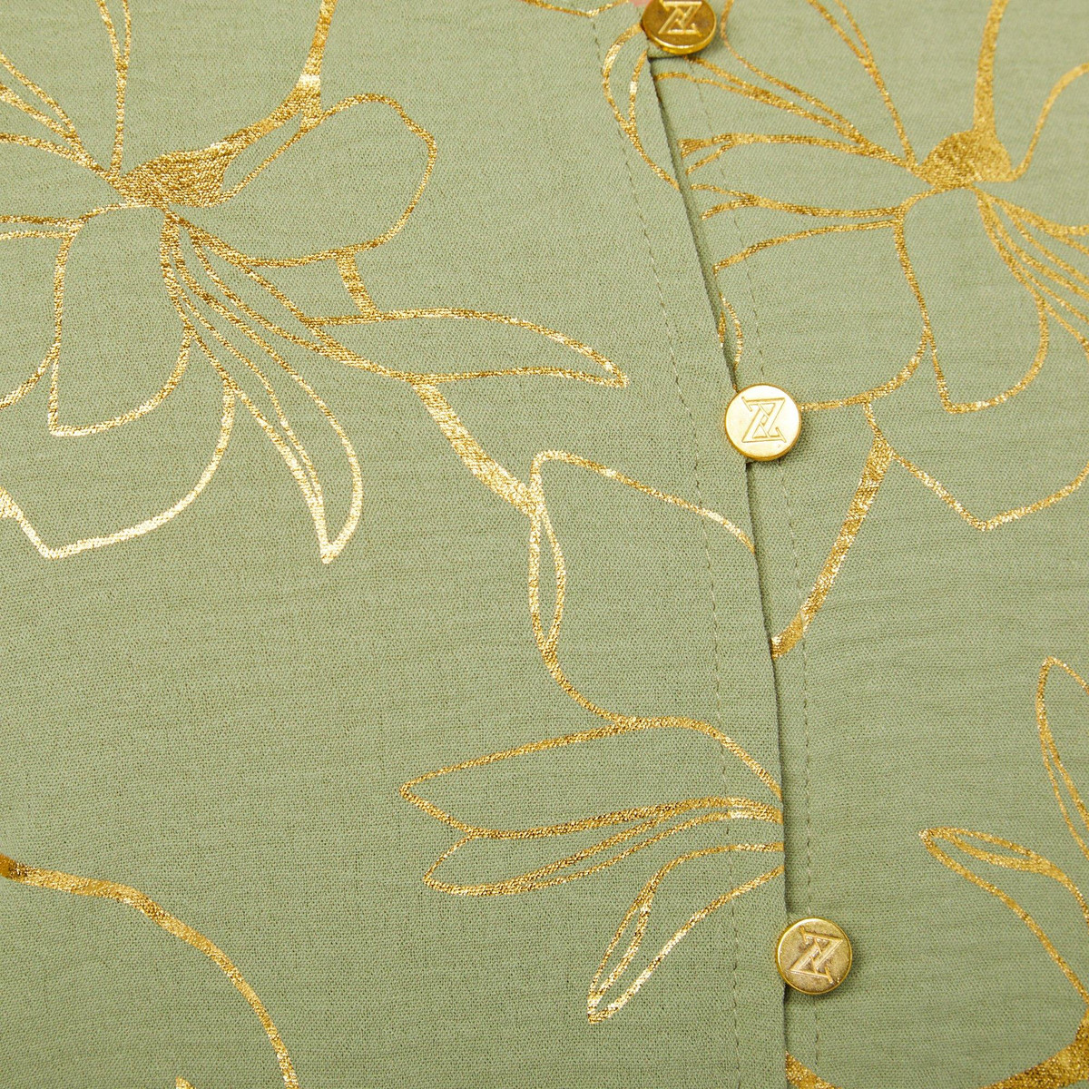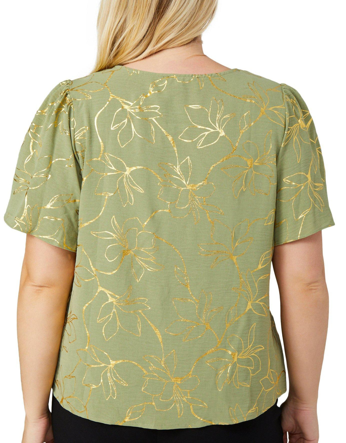 This Short Sleeve Dolman Top features eye catching metallic print designs, a tie front detail, and a buttoned front for added style. With its relaxed fit and soft feel, this top blends comfort and shine for an effortlessly chic look. Fabrication is 99% polyester, 1% metallic.