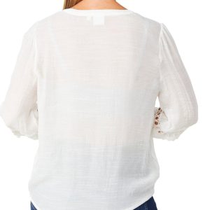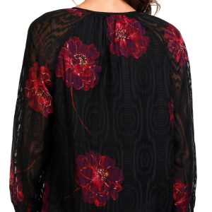 This Short Sleeve Dolman Top features eye catching metallic print designs, a tie front detail, and a buttoned front for added style. With its relaxed fit and soft feel, this top blends comfort and shine for an effortlessly chic look. Fabrication is 99% polyester, 1% metallic.