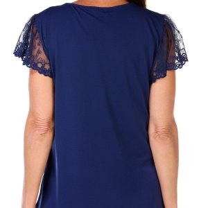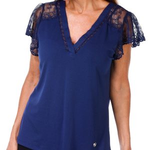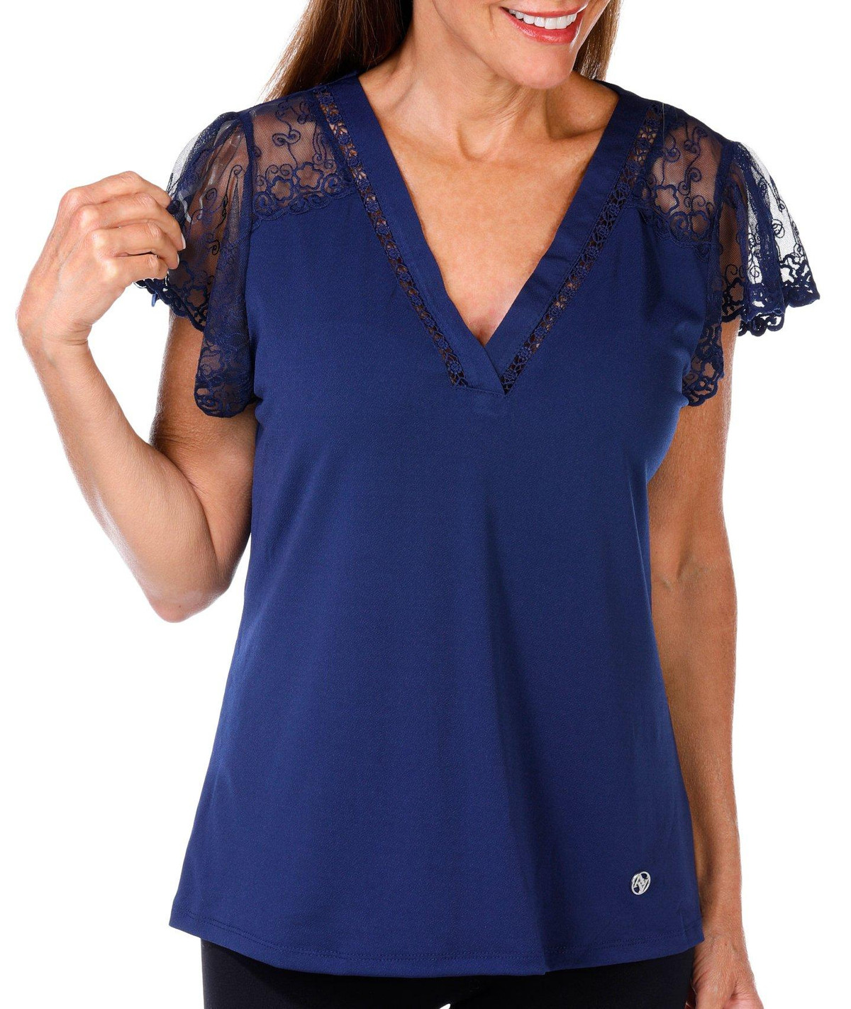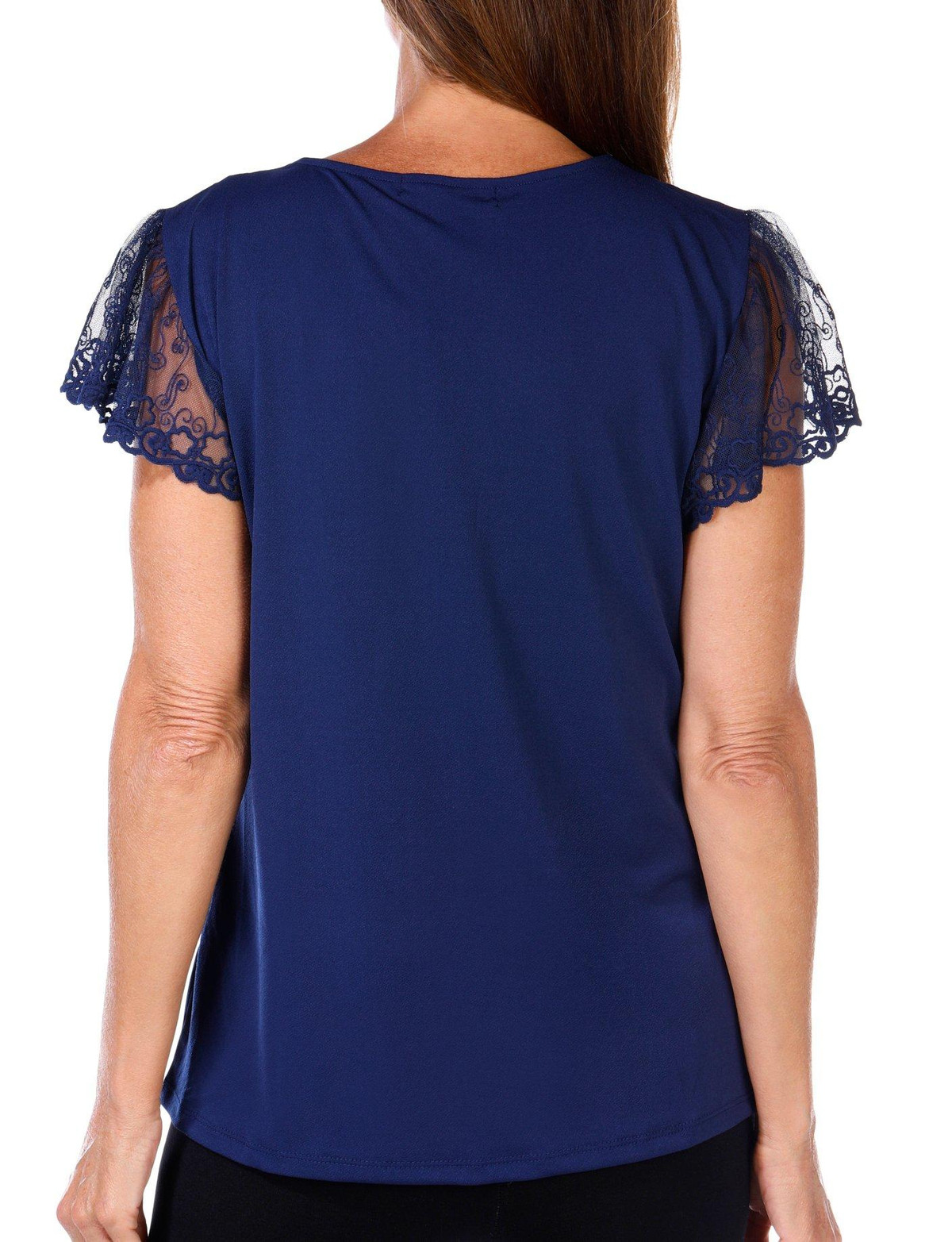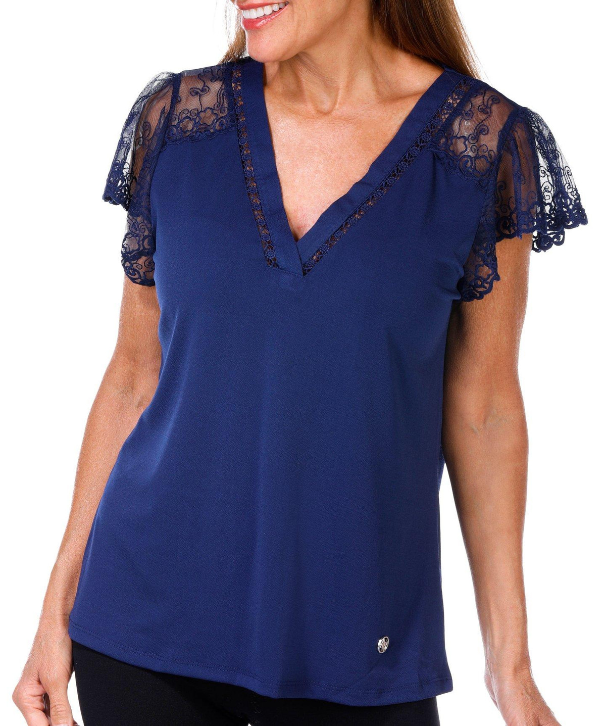 Adrienne Vittadini Womens Short Sleeve Solid Lace Top