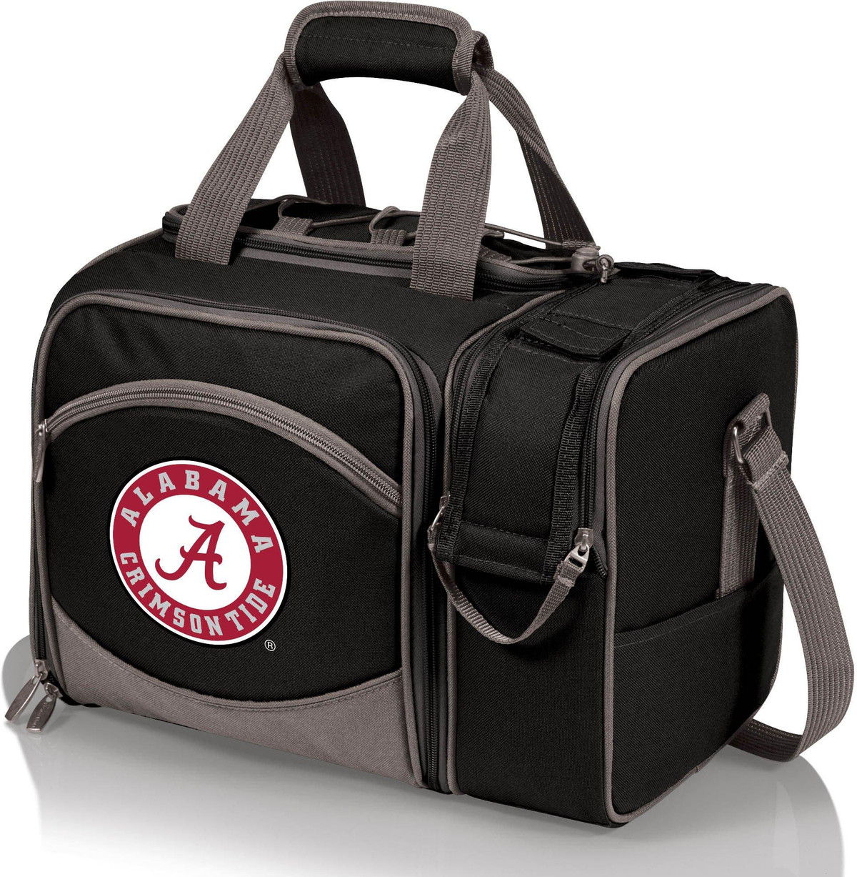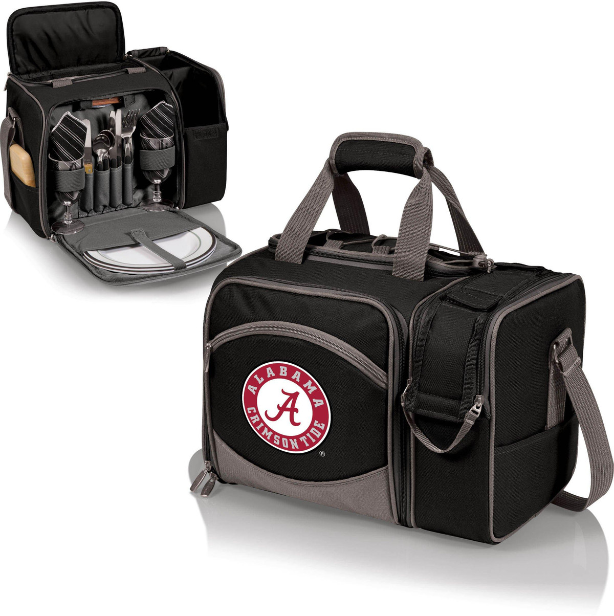 The Malibu Picnic Tote includes two 9” melamine plates, two 8 oz. wine glasses, four 14” cotton napkins, two stainless steel forks, knives, and spoons each, one 6”L x 6”W cutting board, one stainless steel cheese knife, and one stainless steel corkscrew. Measures 15”L x 9”W x 11”H.