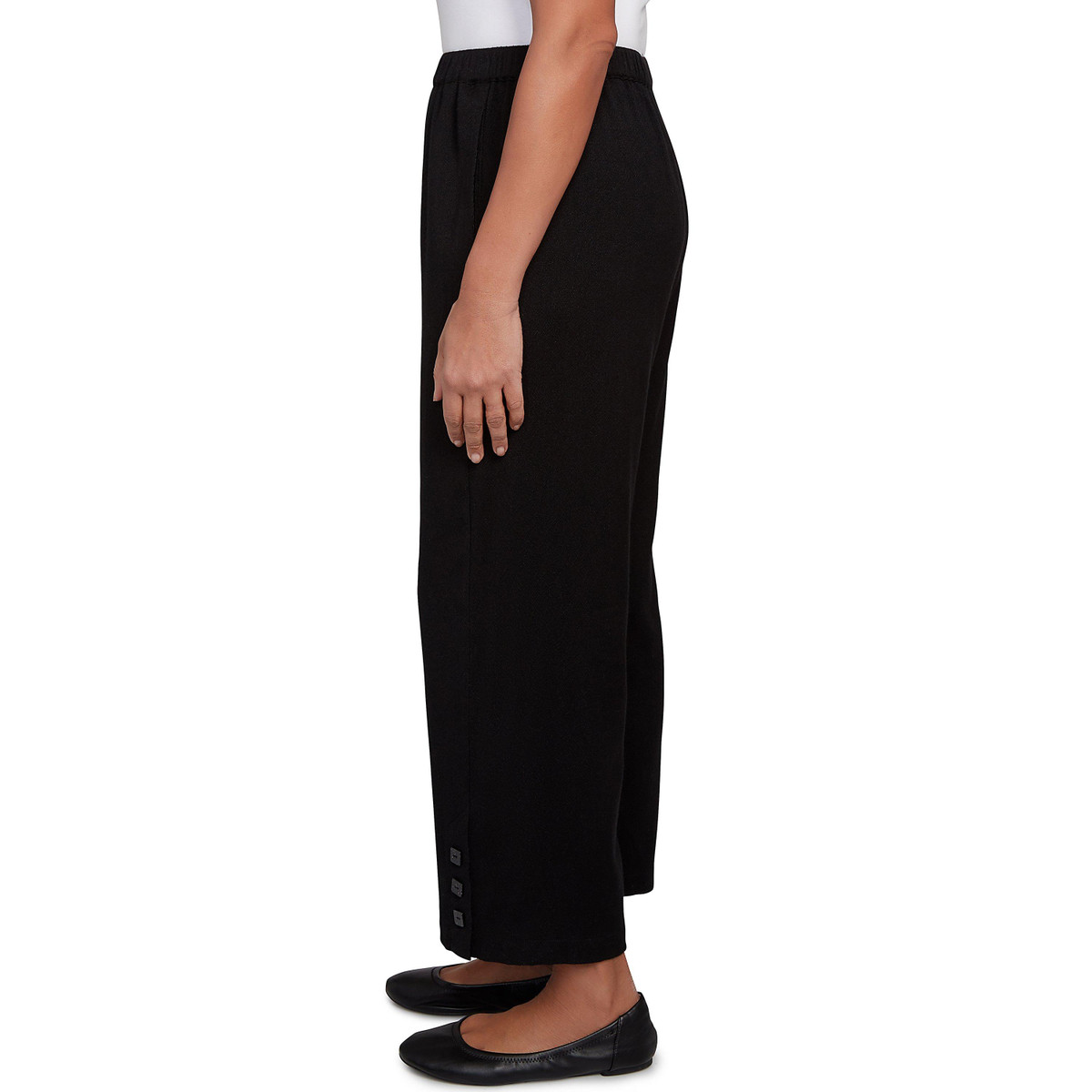 Elevate your wardrobe with these versatile ankle pants from Alfred Dunner, designed to combine comfort and chic style effortlessly. With a sleek elastic waistband and trendy button-cuff details, these pants can transition from casual outings to stylish events, ensuring you look polished and feel great all day long.
