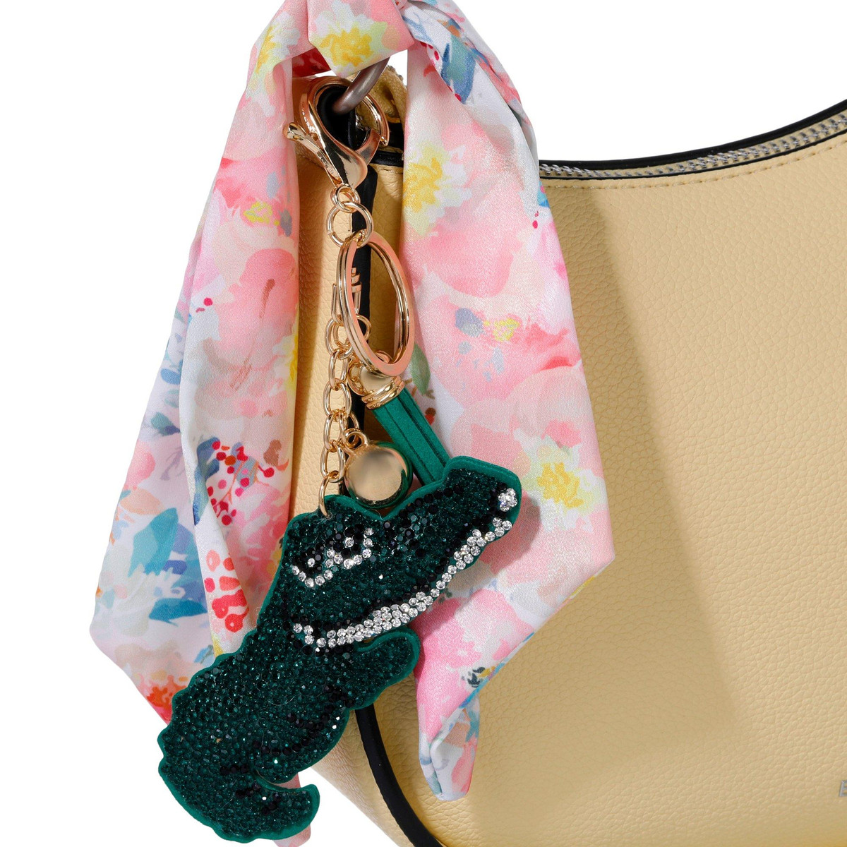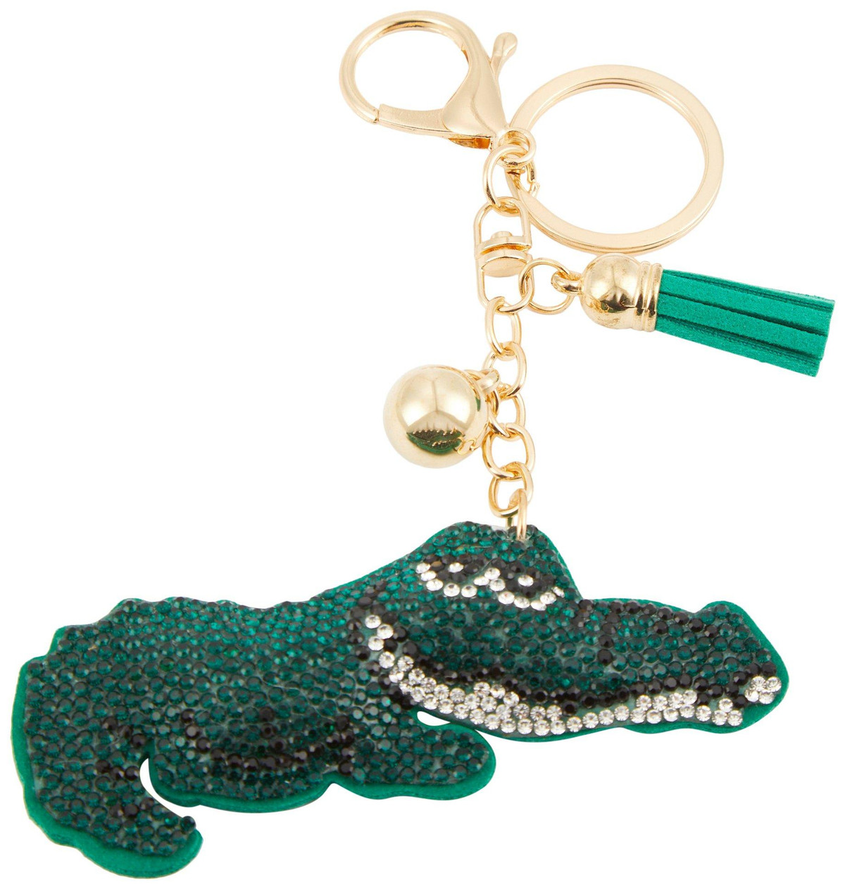 Bring bold style to your accessories with this 4-inch Alligator Bag Charm. Covered in shimmering rhinestones and finished with a gold-tone lobster claw closure, it is a fierce and fashionable statement piece for any bag or keychain.