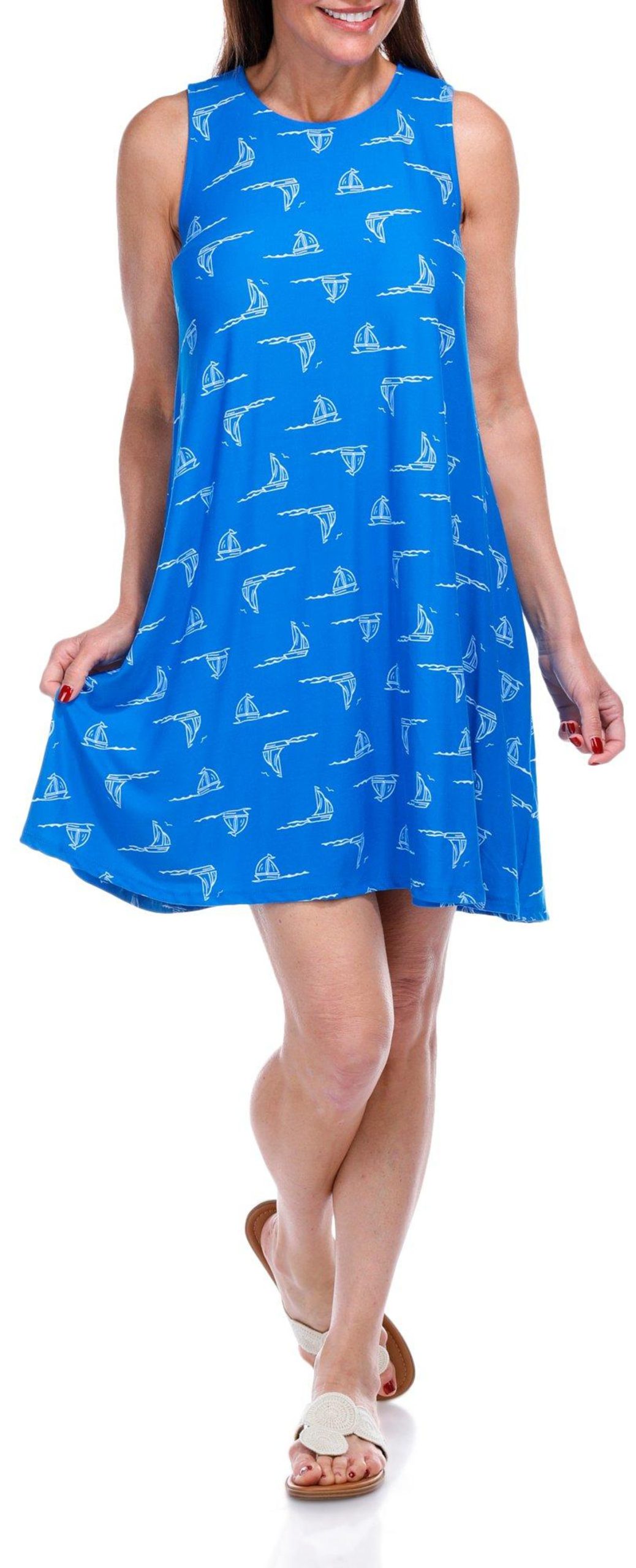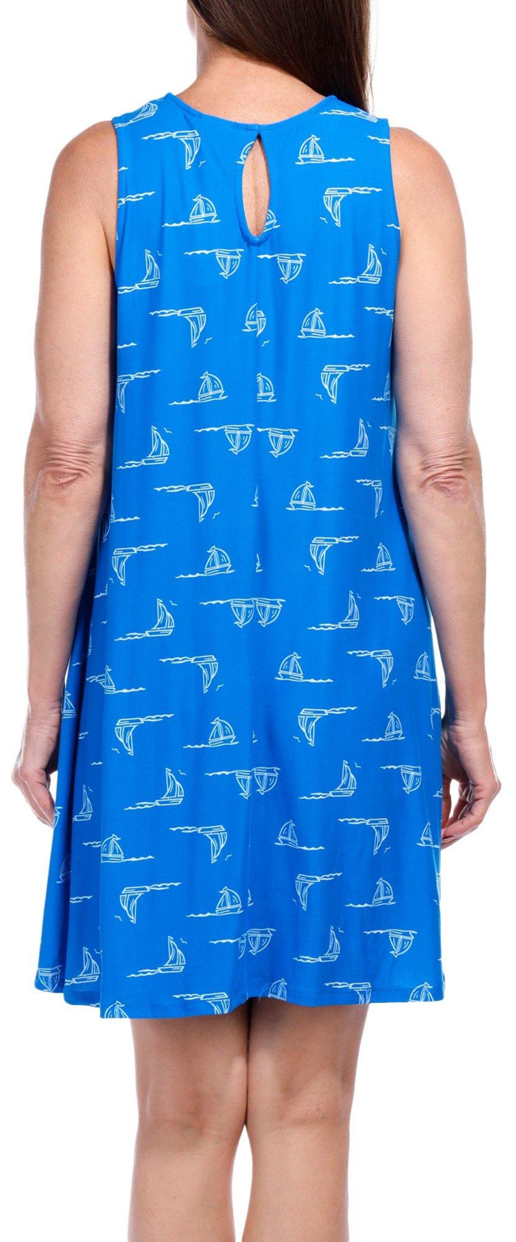 The Women’s Sleeveless Print Swing Dress combines comfort and style with its flowy silhouette and vibrant print. Designed to flatter every body type, this dress offers a relaxed fit and soft fabric that moves with you. Perfect for warm weather, its ideal for casual outings or dressing up for special occasions. Fabrication is 92% polyester, 8% spandex.
