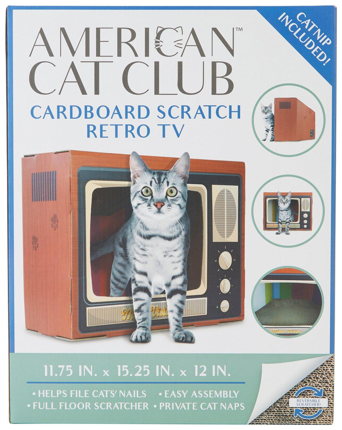 Bring vintage charm and feline fun with the Cardboard Scratch House Retro TV. Designed to resemble a classic television, this cardboard house features a full-floor scratcher that helps file cats nails while offering a cozy space for private naps. Lightweight construction allows for easy assembly and placement. Ideal for indoor use and multi-cat homes. Replace scratch insert as needed. Measures approximately 11.75 in x 15.25 in x 12 in.