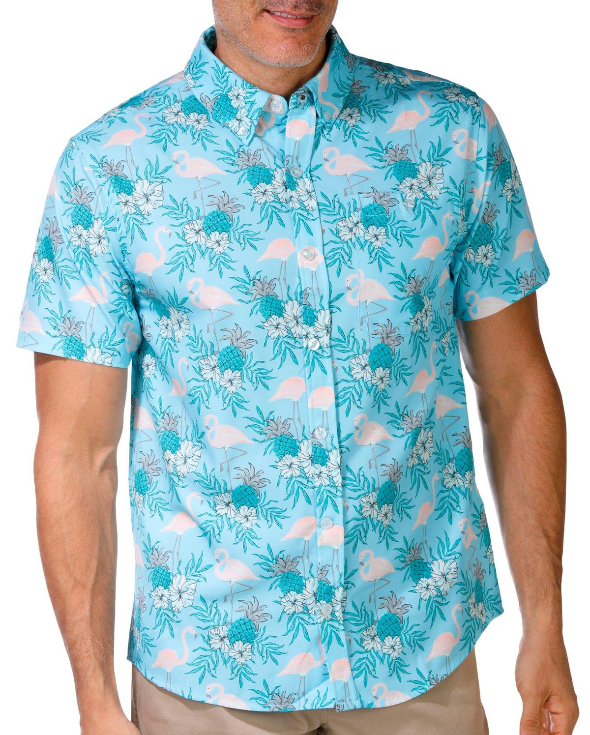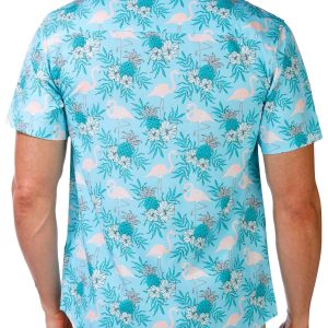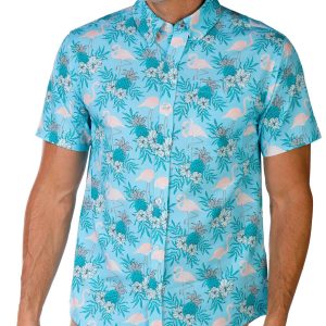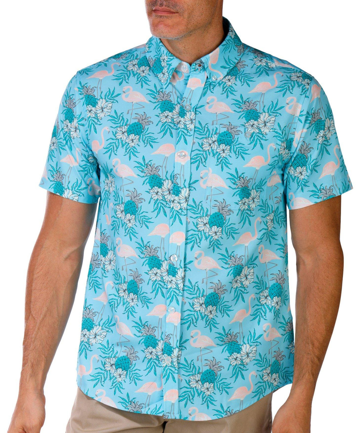 ANGLR Men's Short Sleeve Floral Flamingo Button Down Shirt