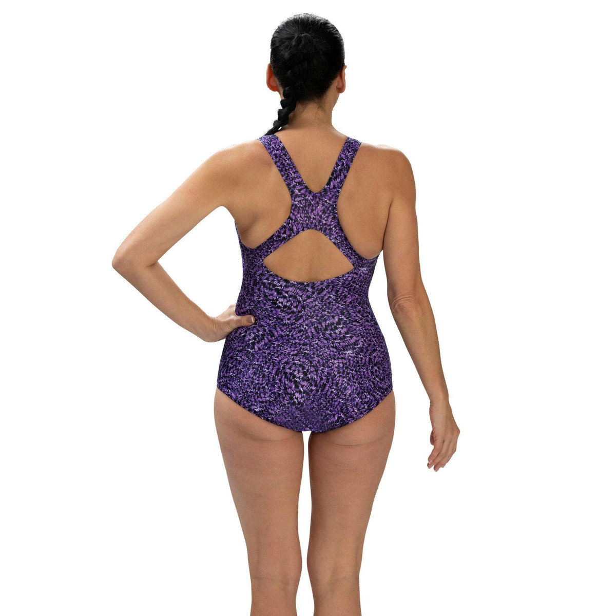 Stay cool and confident in this sleek scoop-neck swimsuit! Made from 100% polyester, its quick-drying, chlorine-resistant, and offers UPF 50+ sun protection. A built-in shelf bra with sewn-in cups adds support, while the conservative leg cut and hip-minimizing design provide comfy, modest coverage, perfect for all-day fun in the sun!