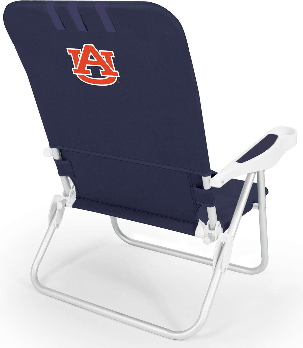 The Monaco Beach Chair is the lightweight and features a 34” 6 position reclining seat back with a 19.5” seat, and sits 11” off the ground. Chair also features cup holder in the armrest, headrest & convenient backpack straps.