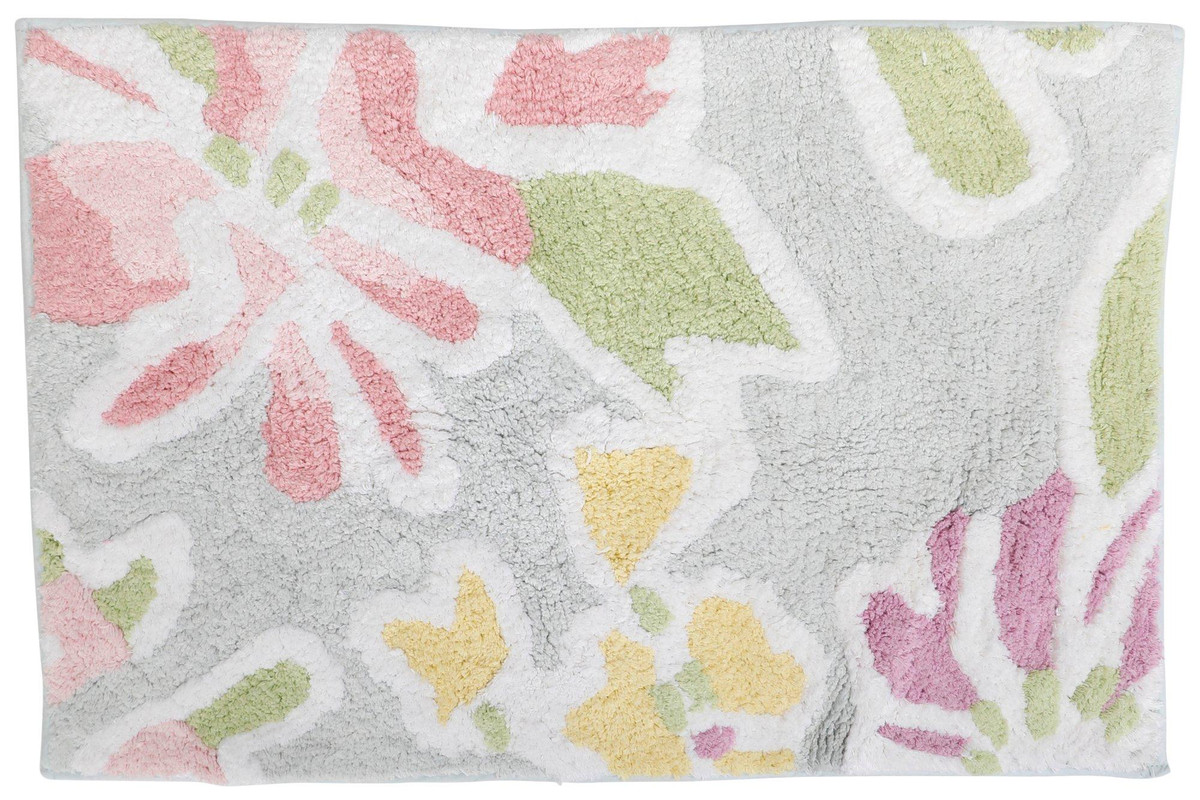 Transform your bathroom into a cozy retreat with a plush bath rug featuring an abstract design that complements any decor. Made for comfort, it offers a soft, luxurious feel underfoot. The absorbent material dries quickly, while the non-slip backing helps keep it securely in place. Fabrication is 100% cotton pile. Measures approximately 20 in x 30 in.