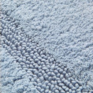 Bring a bit of the shore indoor and go totally beach chic in your bathroom or kitchen with the Sequin Shells from Avanti. The oversized rug features starfish on an aqua ground tufted in 100% cotton. The rug is skid resistant and machine washable. Measures 24 in x 60 in.