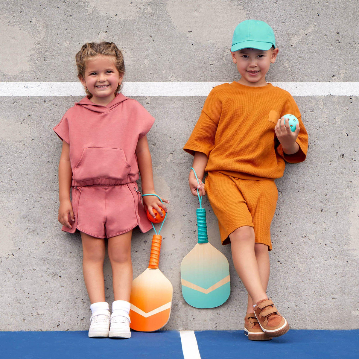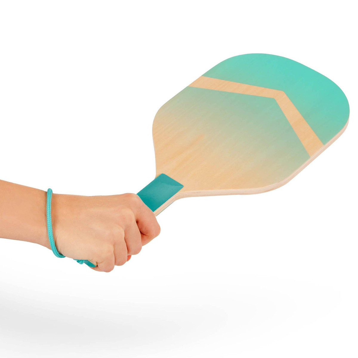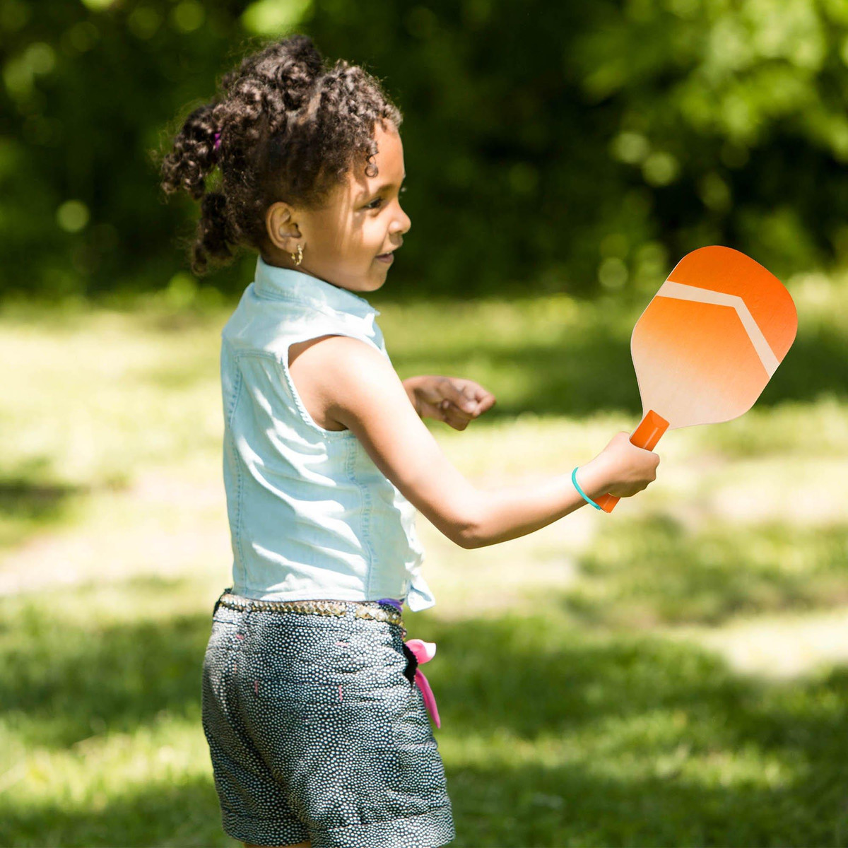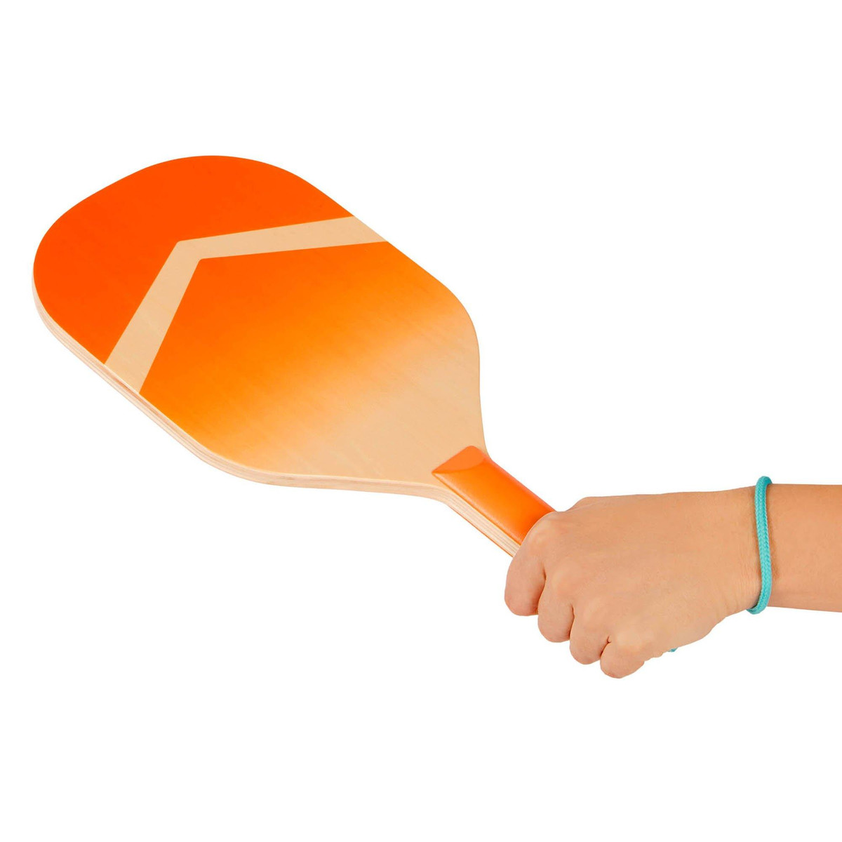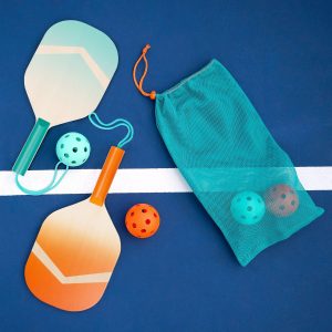 Grab a paddle get ready to serve up some pickleball a sport for all ages! This set features 2 paddles with easy-grip handles and 4 balls in two fun colors. Ages 3+.