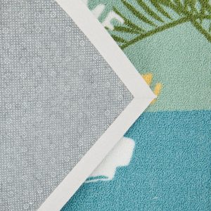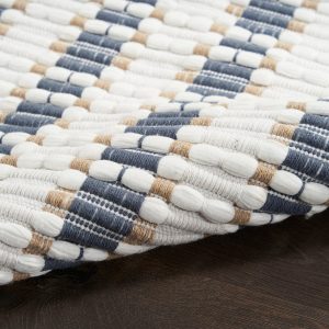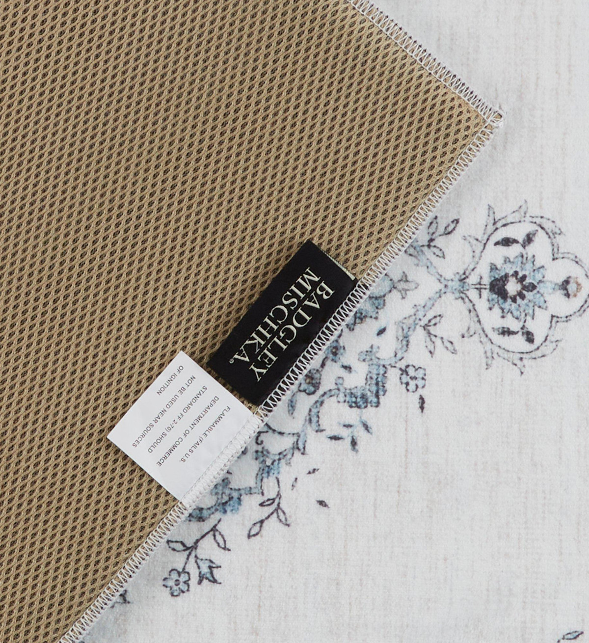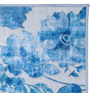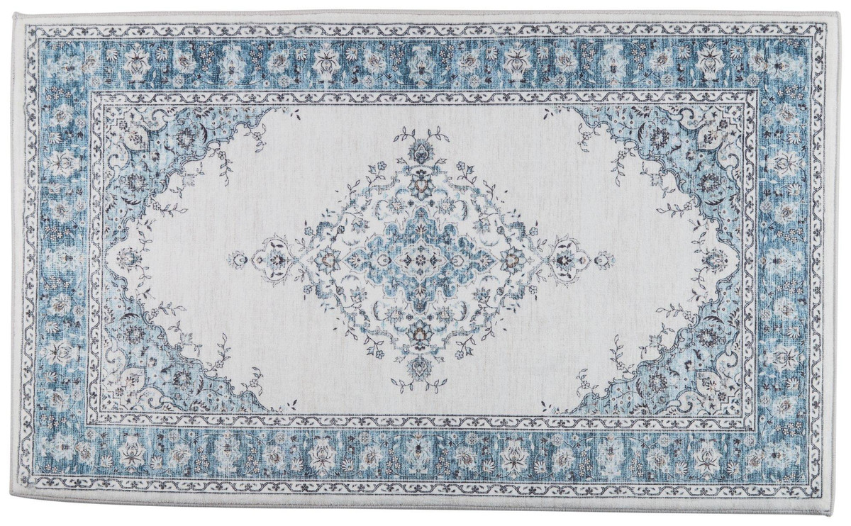 Enhance comfort and style with this 27×45 Memory Foam Cream Blue Accent Rug, crafted from 100% polyester with a soft memory foam core. Features an anti-slip backing, stain resistance, and pet-friendly design. Machine washable for easy care in high-traffic areas. Measures approximately 27 in x 45 in. Fabrication is 100% polyester.