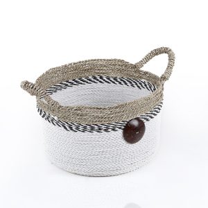 Baum 3 Pc. Raffia & Seagrass with Coco Buttons Storage Bins