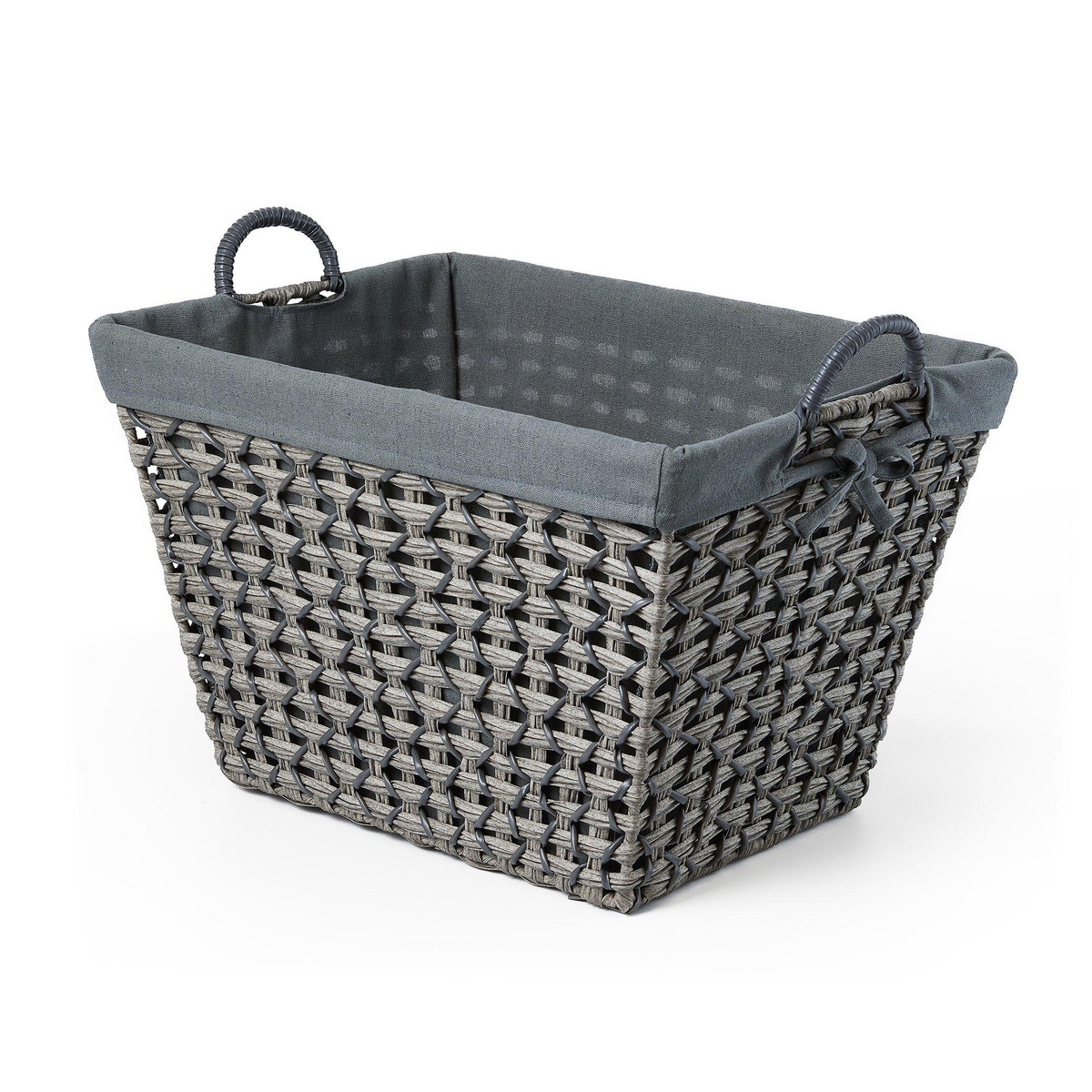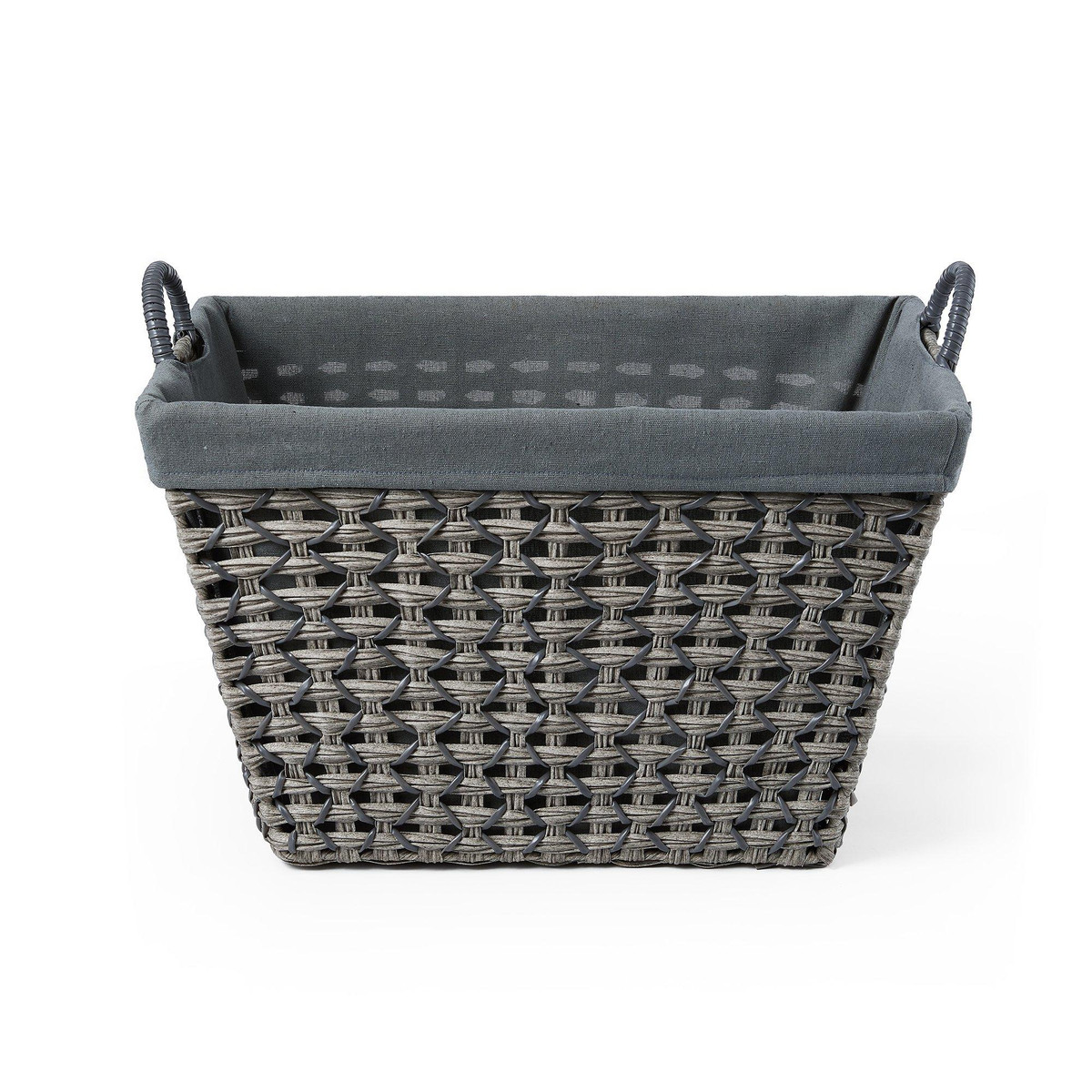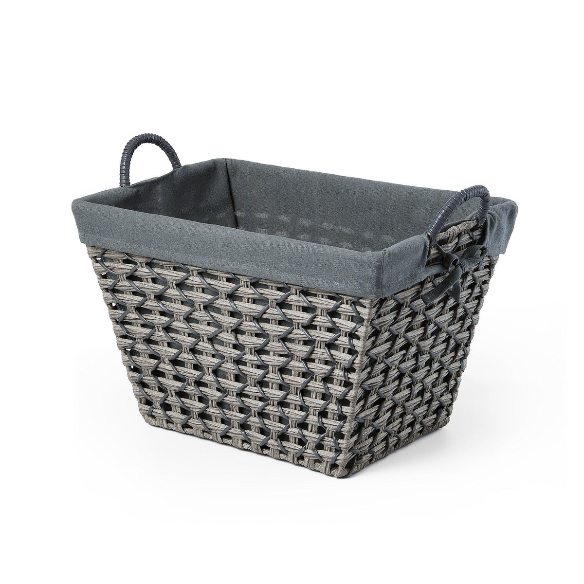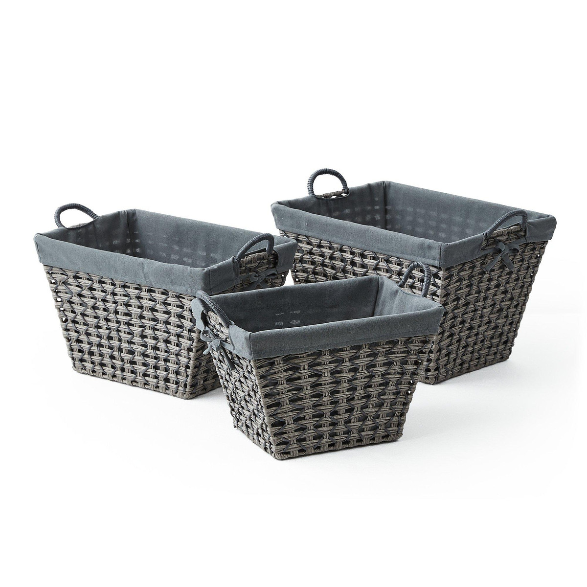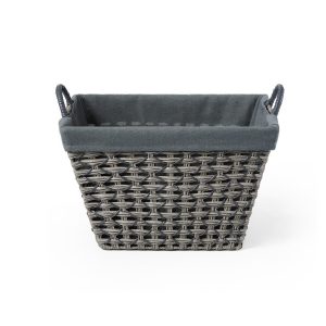 This set of three Rectangular Faux Wicker Woven Storage features a classic woven design with a modern twist, a lift out liner for easy cleaning, these baskets add warmth and texture to any room. The sturdy handles and solid construction make them perfect for functional storage while doubling as elegant décor pieces. Large – 20.1 in. x 14.2 in. x 12.6 in., Medium – 18.1 in. x 12.2 in. x 11.4 in., Small – 16.1 in. x 10.2 in. x 10.2 in.