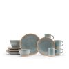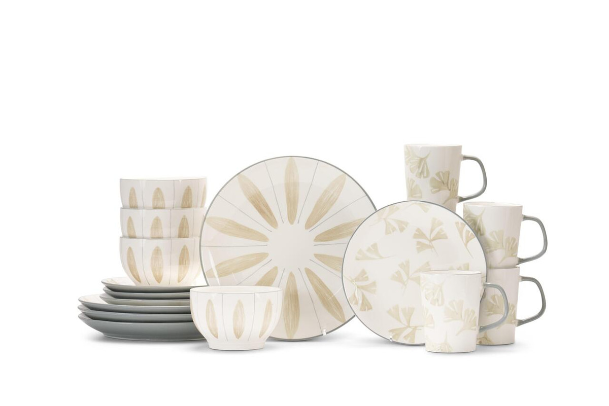 Inspired by artisanal mid-century design, this dinnerware has a hand painted look that feels light and airy. Four unique patterns complement each other, creating a playfully layered tablescape. Each piece reveals a soft grey finish, perfect for everyday dining.
