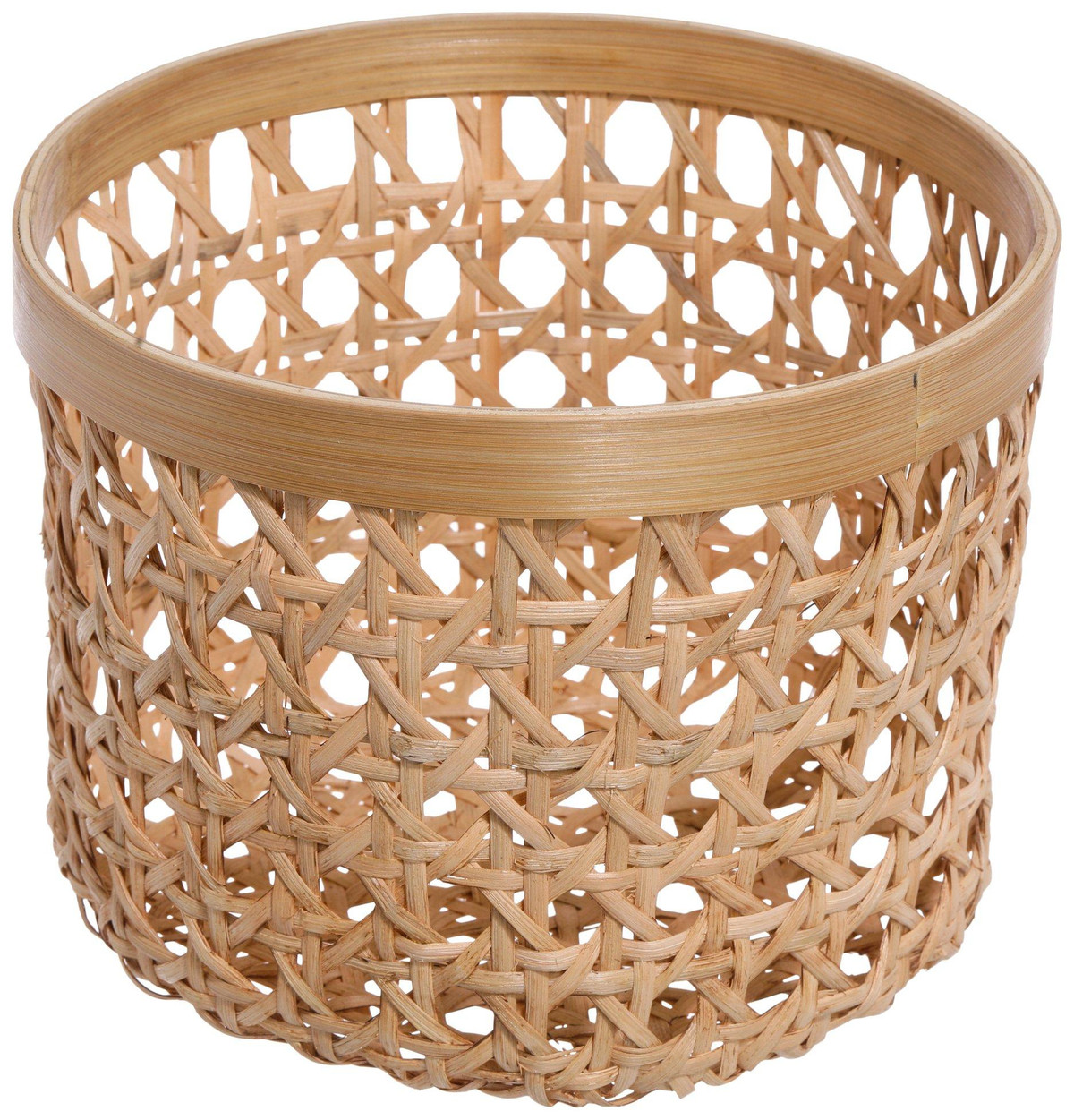 Organize with natural charm! This 10 x 8 inch round basket is crafted from natural cane and bamboo, blending rustic elegance with everyday function. Perfect for storing towels, toys, or household essentials, it adds a warm, earthy touch to any space.