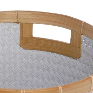 Natural simplicity meets refined craftsmanship in the Round Square Bottom Bamboo Storage Basketa unique fusion of organic texture and structured design. Handwoven from sustainable bamboo, its round top flows seamlessly into a square base, creating a striking shape that offers both visual appeal and sturdy functionality. Measures 14 in x 14 in x 15 in.