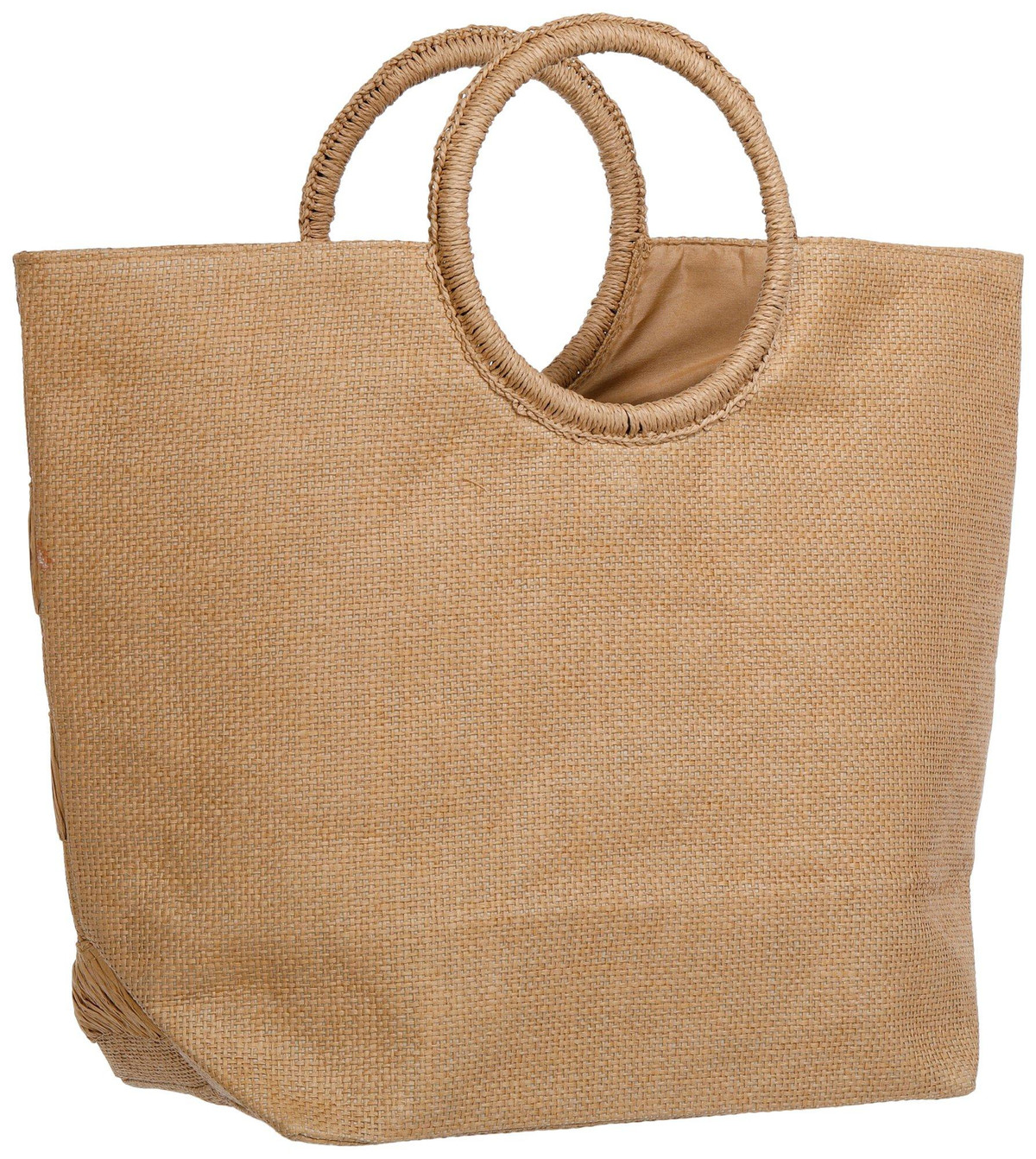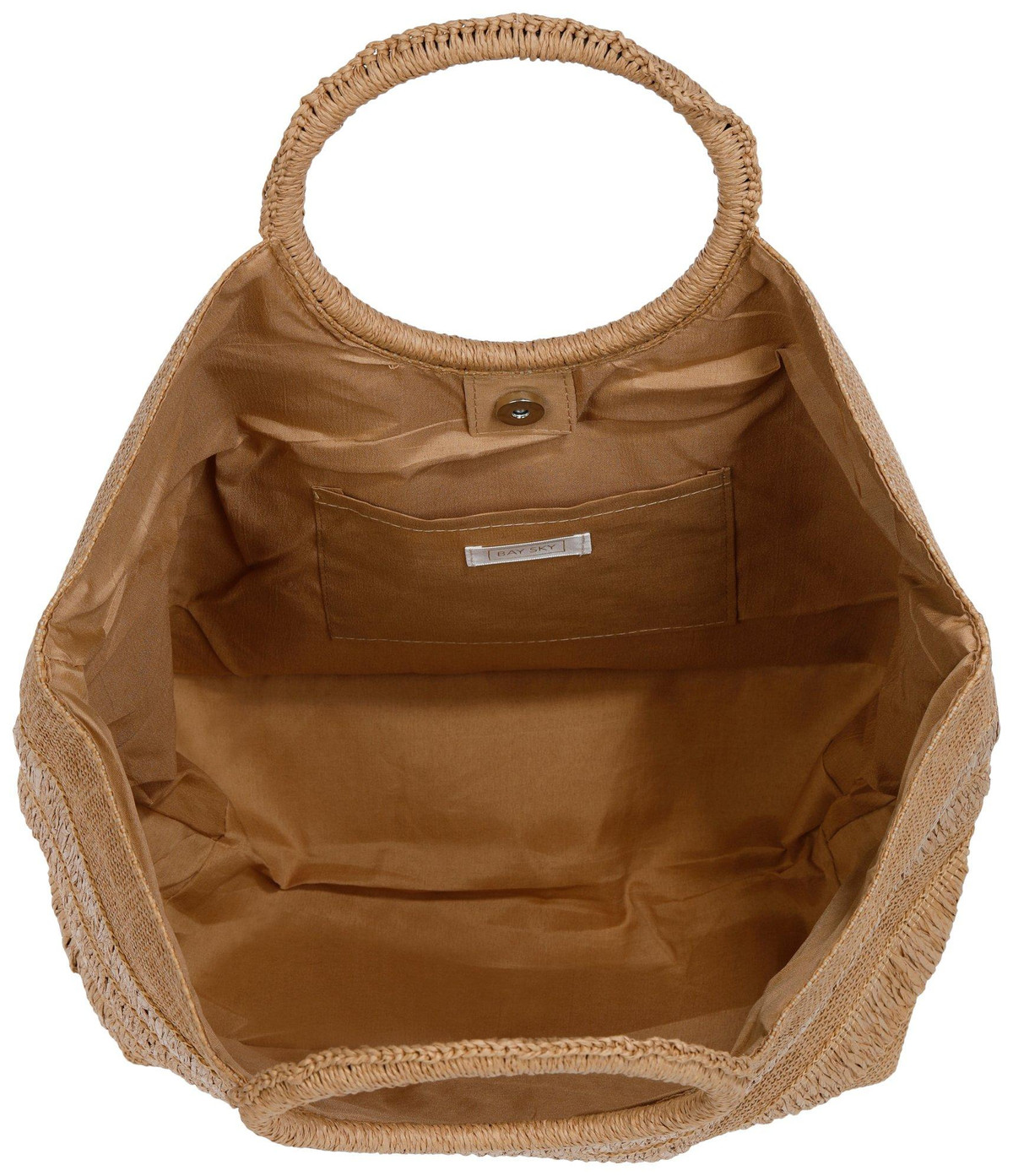 Bring effortless style to warm weather outings with the Round Handle Woven Straw Beach Tote Bag. Featuring two round handles for a modern stylish touch, its fully lined with an interior slip pocket and a magnetic snap closure for convenience. Ideal for beach days, shopping trips, or casual outings. Measures approximately 19 in x 20 in x 8 in.