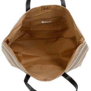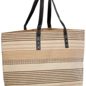 Make a statement on your next getaway with the Yacht Club Oversized Weekender Beach Tote Bag. Crafted from multicolored woven straw, it features two leather-like shoulder straps and a spacious, fully lined interior with a magnetic snap closure. Ideal for beach trips, weekend travel, or casual summer outings. Measures approximately 23 in x 22 in x 8 in.