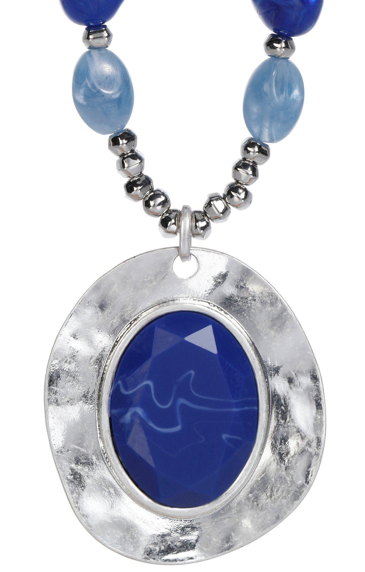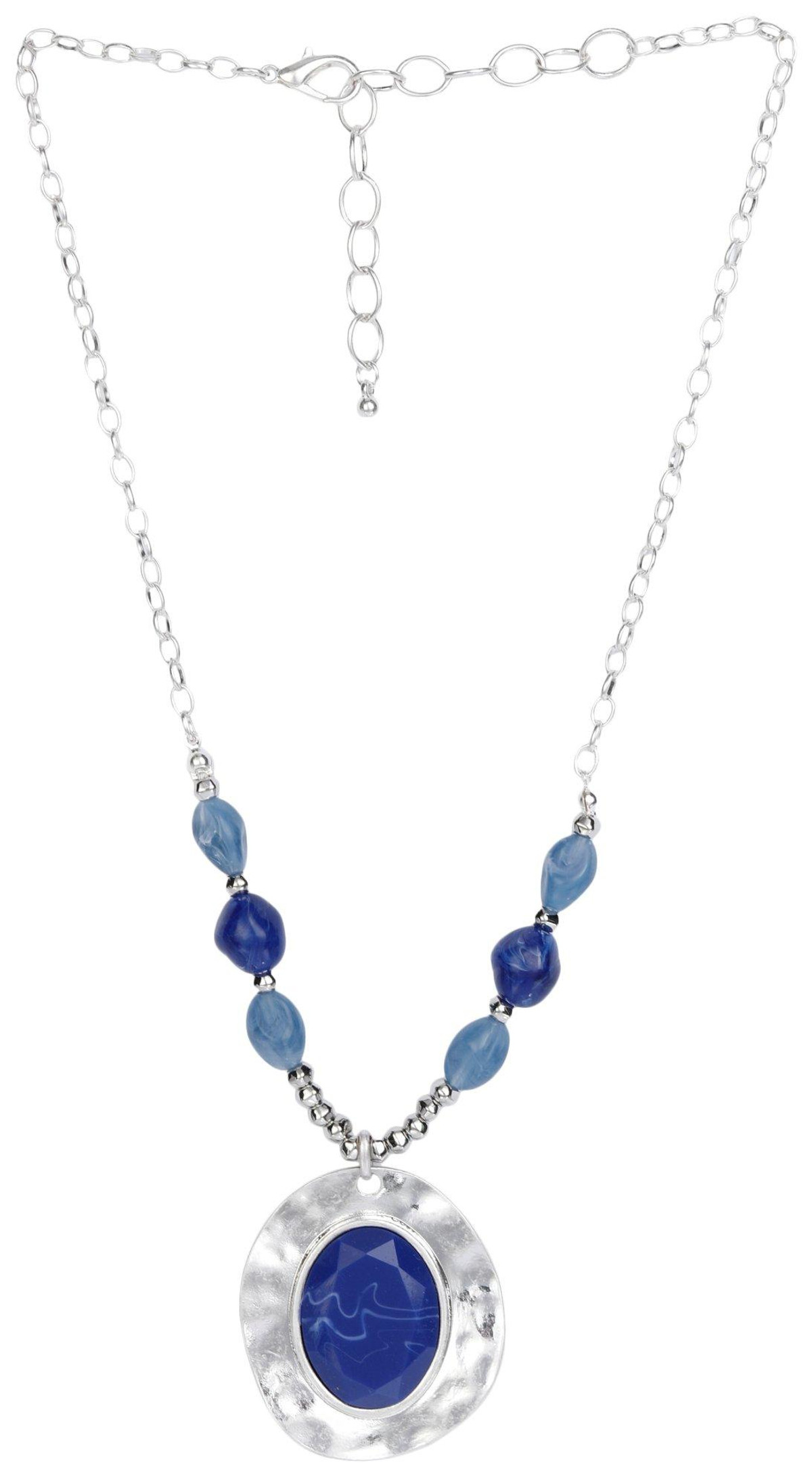 Effortlessly elevate your look with a blend of shimmer and color from this 21 inch necklace, featuring silver and blue beading with a striking pendant. Its bold yet refined style adds instant charm to both casual wear and more polished ensembles. Ideal for day-to-night transitions, offering just the right touch of statement-making elegance.