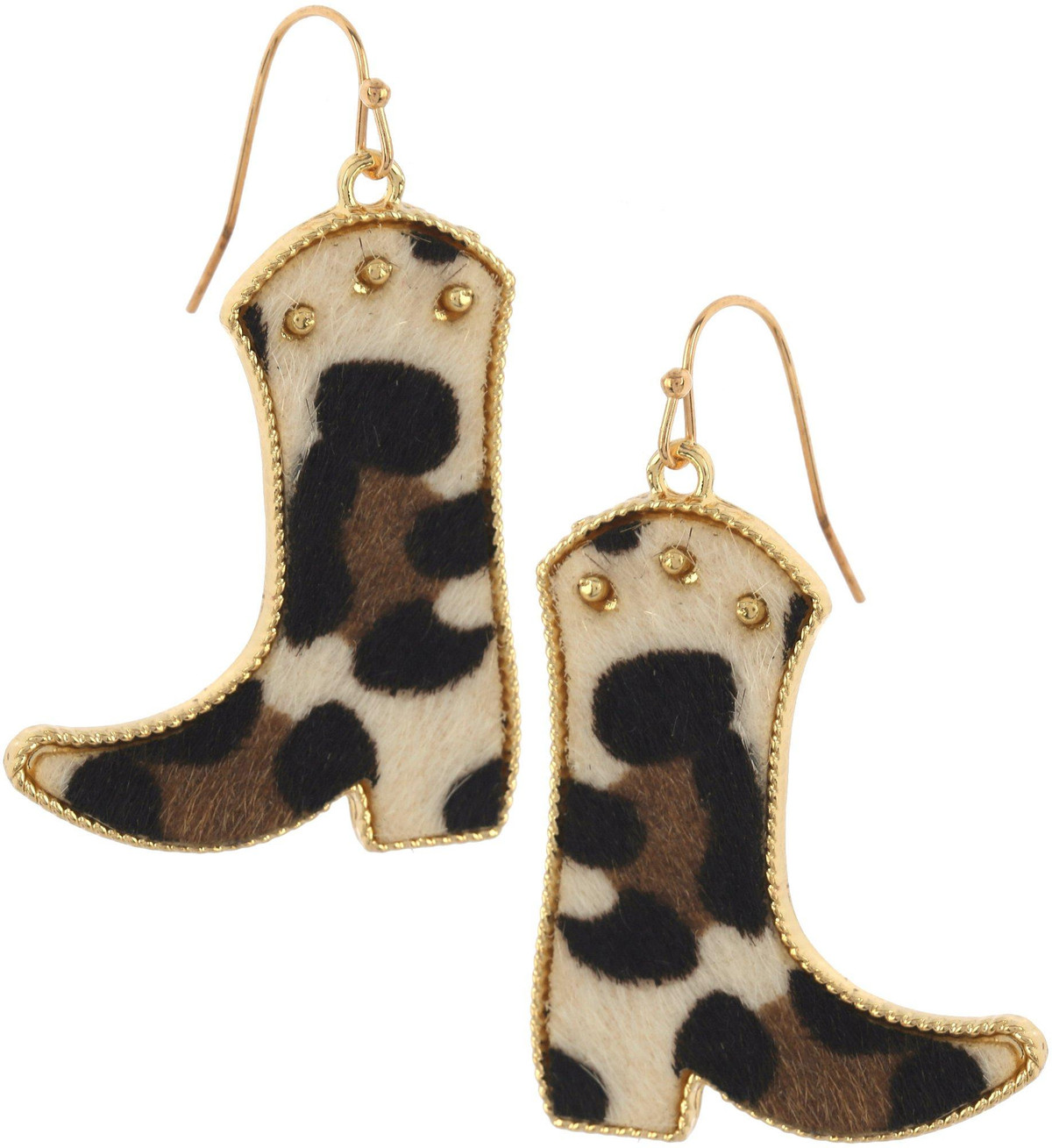 The Bay Studio Leopard Print Cowboy Boot Earrings feature a fun and trendy design with a playful twist. These earrings showcase small cowboy boots adorned with a bold leopard print pattern, creating a stylish blend of western and animal print fashion. The unique design adds a touch of whimsy and personality, making them perfect for those who love to make a statement with their accessories.