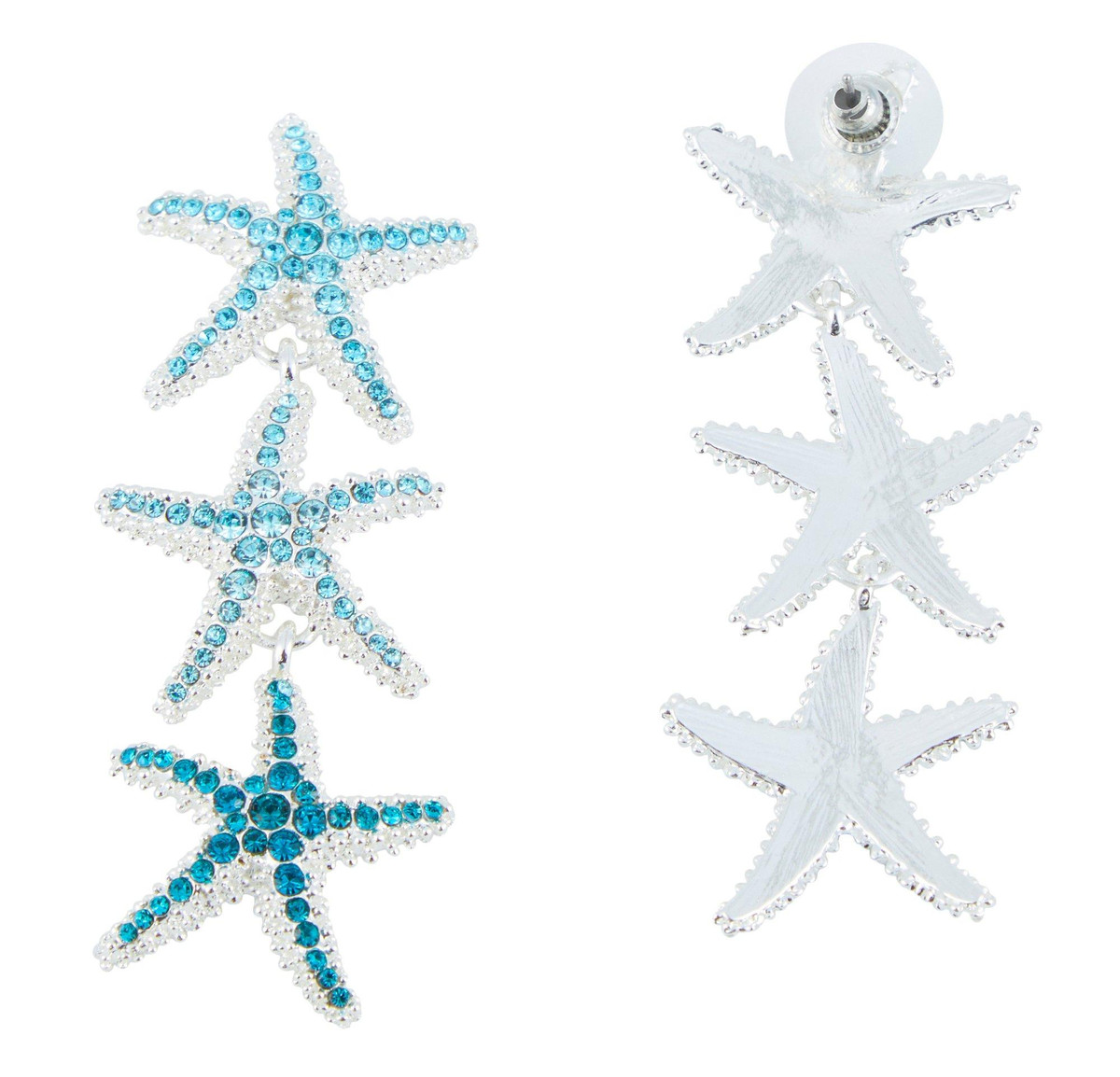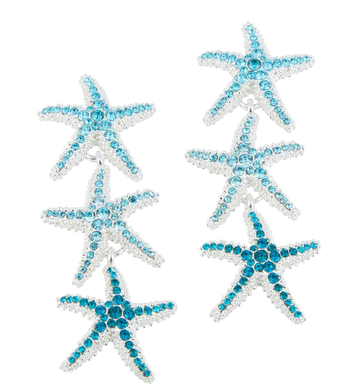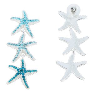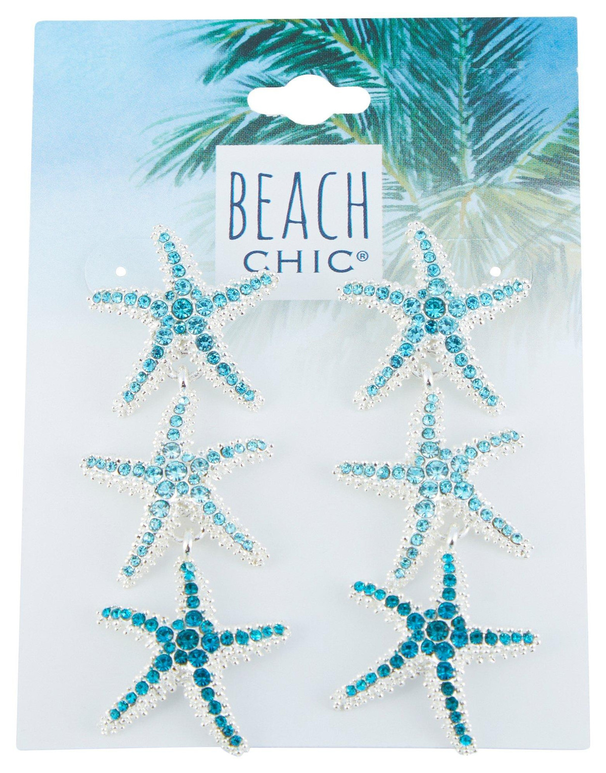 Beach Chic Triple Starfish Rhinestone Dangle Earrings