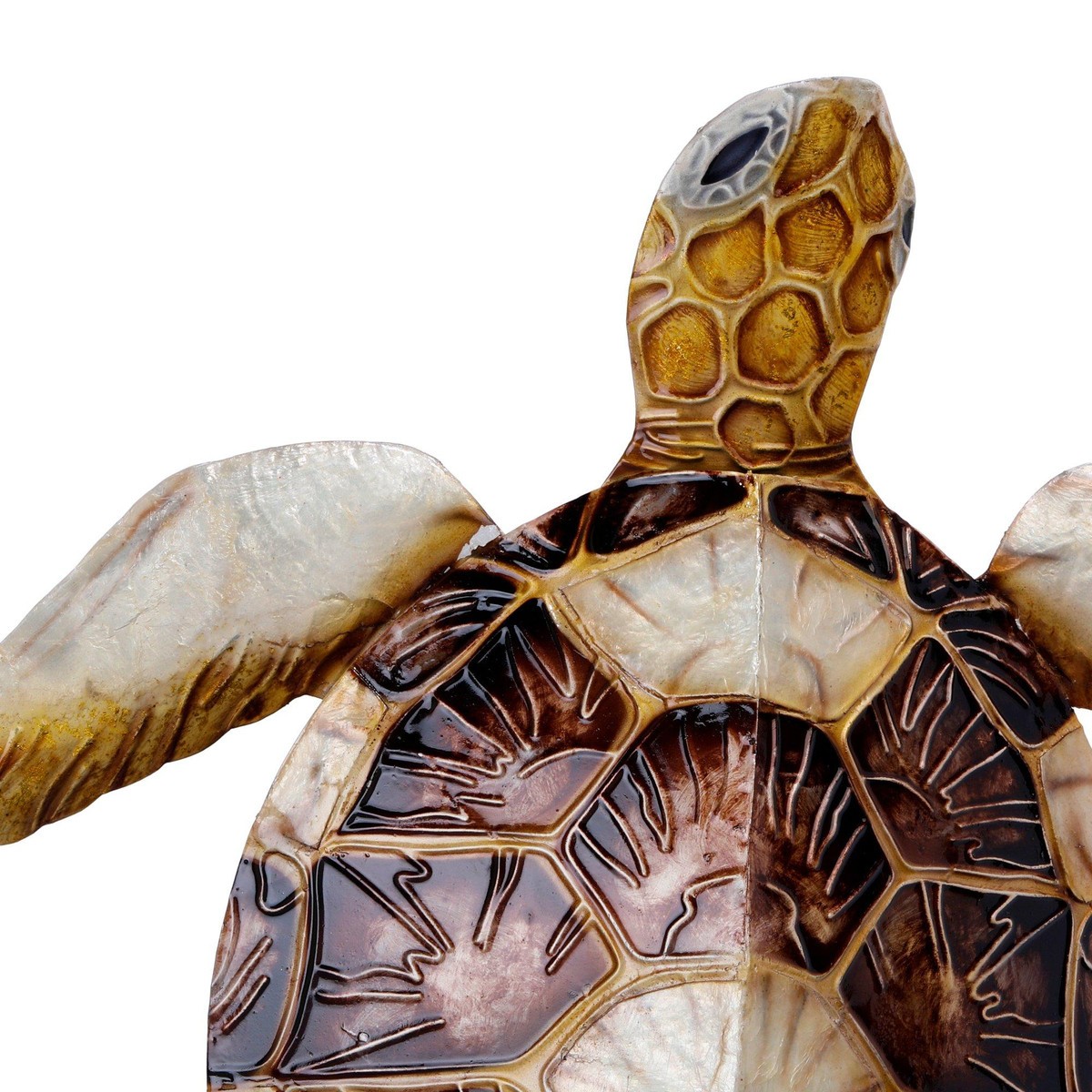 Introducing the 17-Inch Capriz Metal Turtle Wall Plaque capturing the essence of nautical life. Perfect for adding a touch of coastal charm to any room. Made from capriz & metal, it ensures long-lasting beauty. 16-inch L X 2.75-inch W X 17-inch H