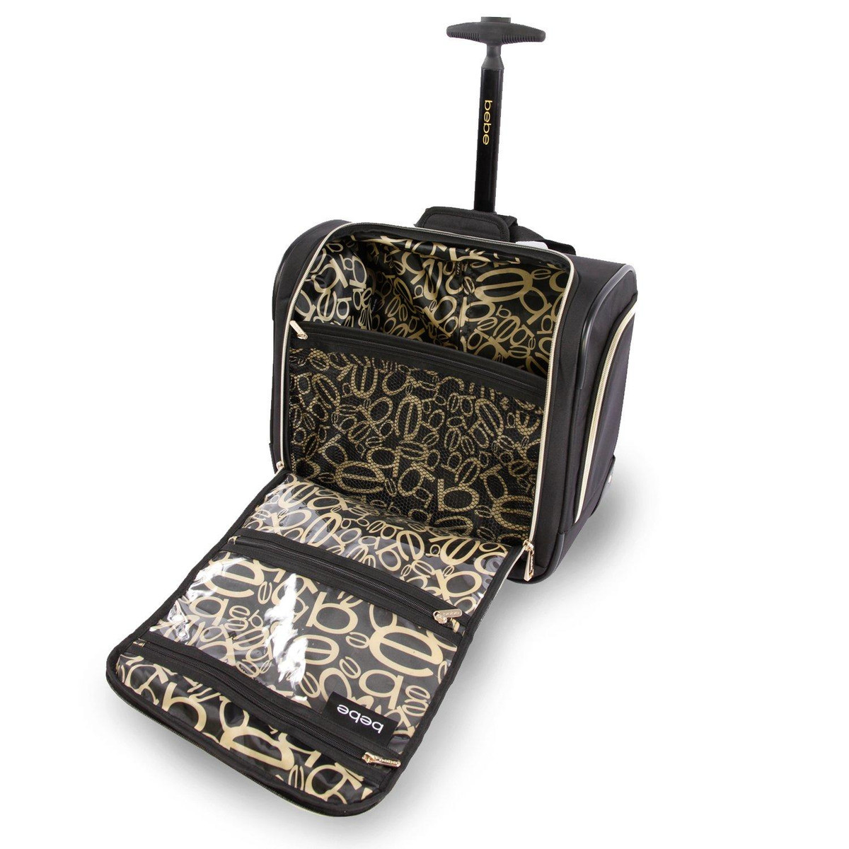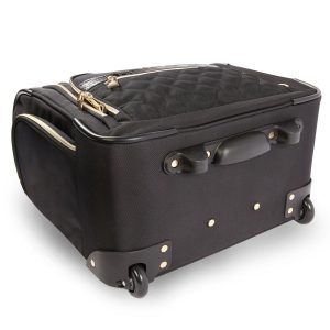 Travel in style with the Bebe Leena under the seat luggage. Compact in size, The luggage provides useful storage space, a telescoping handle and smooth rolling wheels. This carry-on bag is designed to fit underneath most airline seats, so you can access everything you need while flying. Suitcase measures 15 in. x 15 in. x 8.5 in.