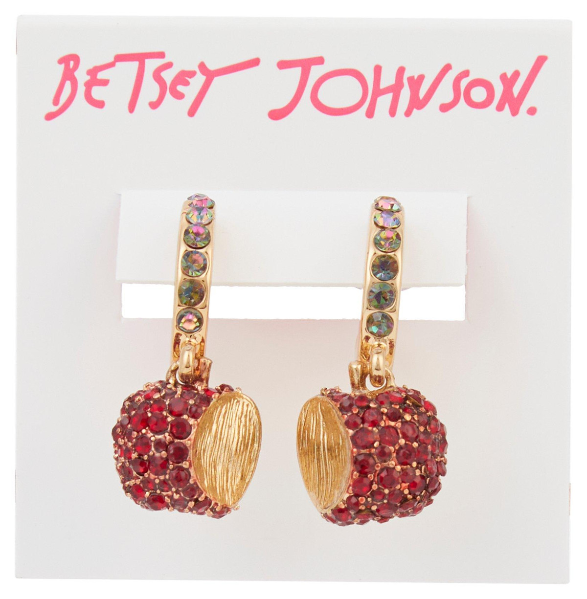 Betsey Johnson Apple Charm Huggie Stud Earrings