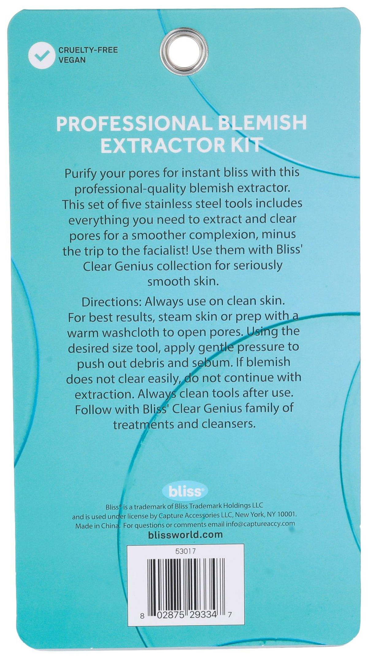 Clear pores and refine your skin with the Bliss 5-Pack Professional Blemish Extractor Kit. Made from durable stainless steel, each tool targets blackheads, whiteheads, and blemishes for a smoother, healthier-looking complexion. Spa-quality results at home.