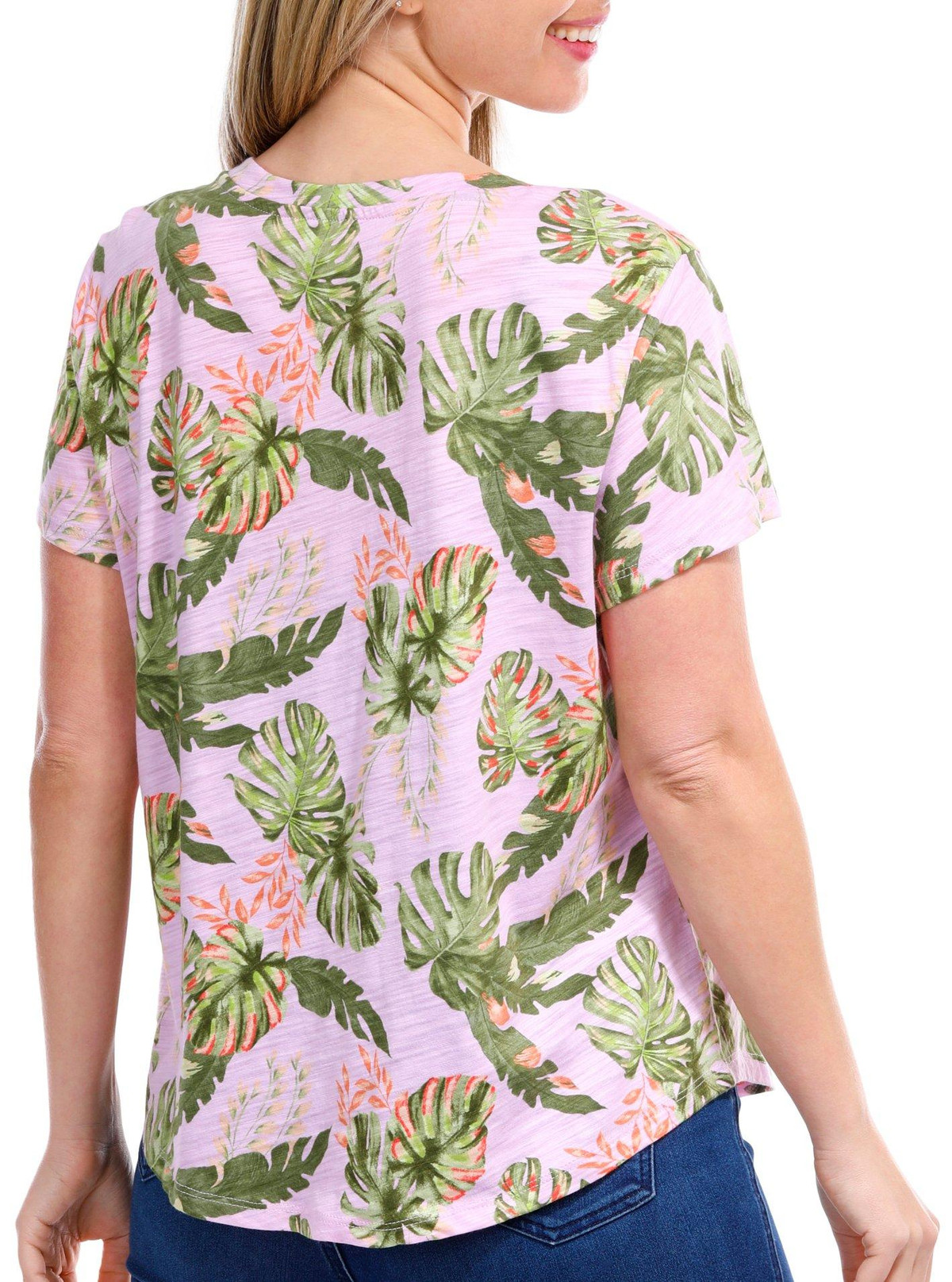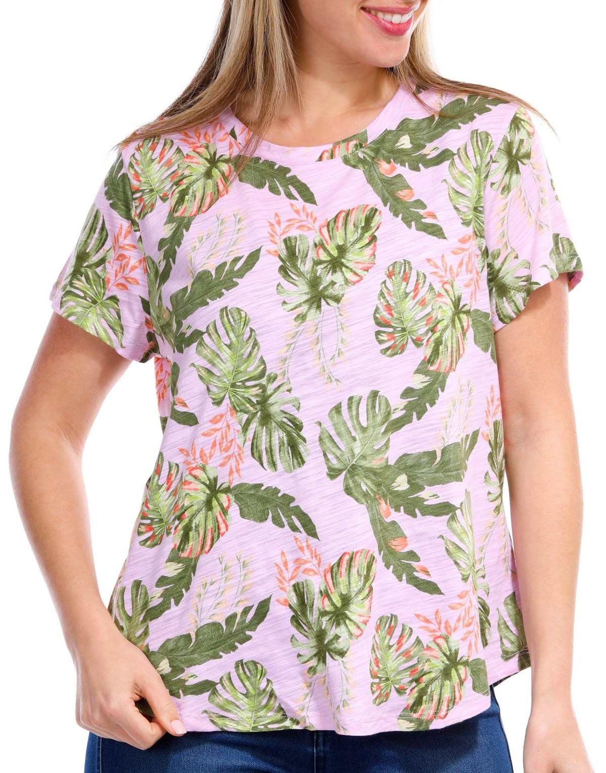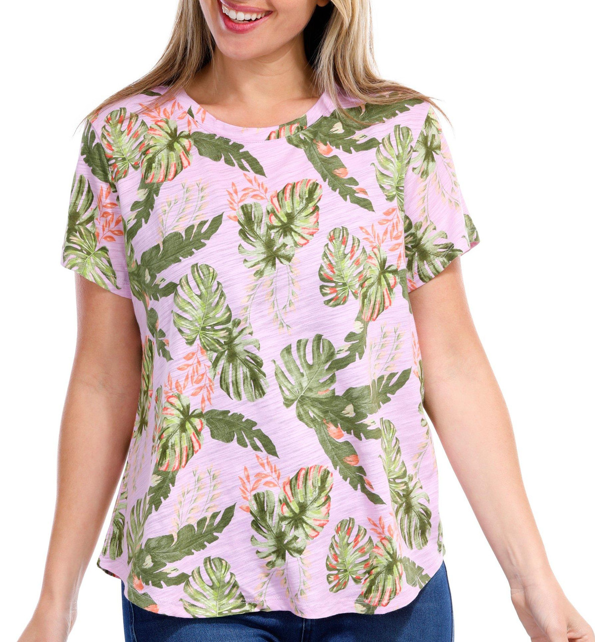 Embrace the essence of summer with the Baja Tropical Short Sleeve Luxey Tee. Featuring a flattering scoop neckline and a vibrant tropical print, this tee is perfect for warm weather and sunny days. Made from soft, breathable fabric, it ensures all-day comfort and ease. Whether you’re heading to the beach or a casual outing, this tee adds a touch of tropical flair to your wardrobe. Top length measures approximately 25 in. Fabrication is 60% cotton and 40% modal.