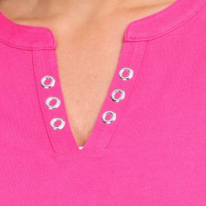 Embrace the essence of summer with the Baja Tropical Short Sleeve Luxey Tee. Featuring a flattering scoop neckline and a vibrant tropical print, this tee is perfect for warm weather and sunny days. Made from soft, breathable fabric, it ensures all-day comfort and ease. Whether you’re heading to the beach or a casual outing, this tee adds a touch of tropical flair to your wardrobe. Top length measures approximately 25 in. Fabrication is 60% cotton and 40% modal.