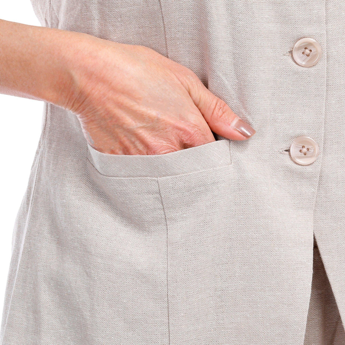 Enhance your ensemble with our Sleeveless Buttoned Vest, a versatile piece in a solid color that complements any outfit. The double front faux pockets add a stylish touch, giving the vest a sophisticated look without compromising on elegance. Perfect for layering over shirts or dresses, this vest is a must-have for adding a polished finish to your wardrobe. Fabrication is 80% rayon and 20% linen.