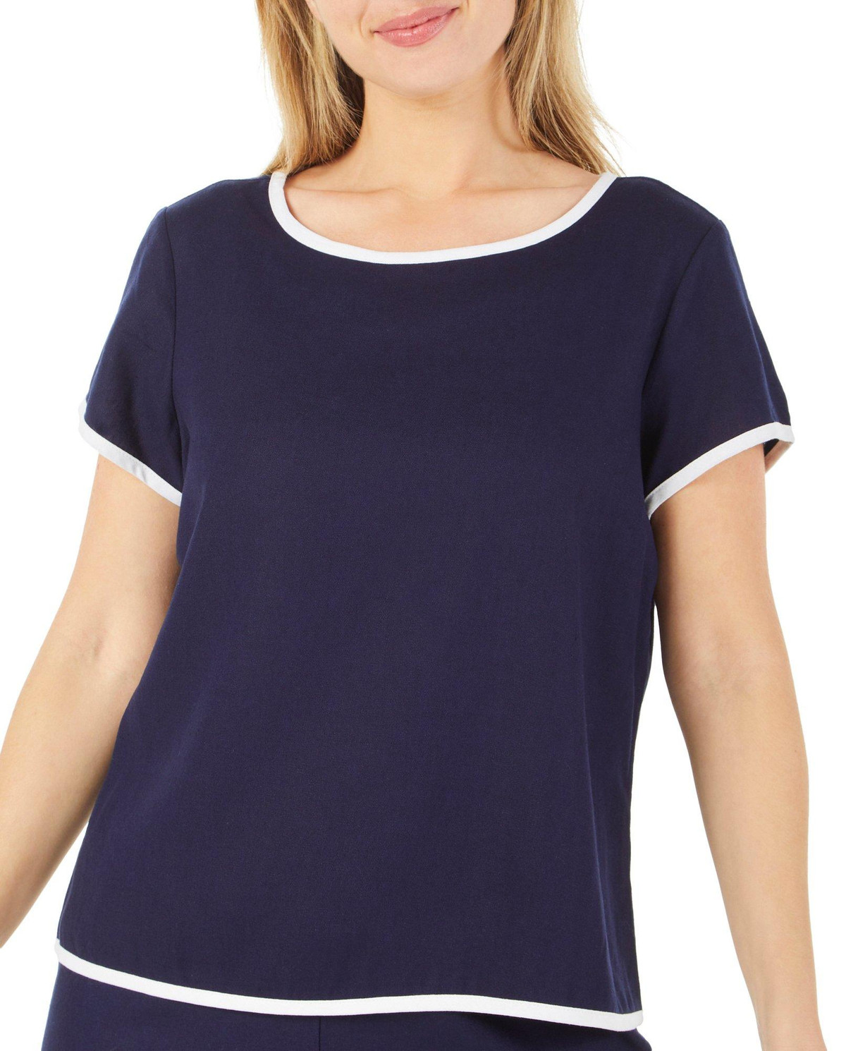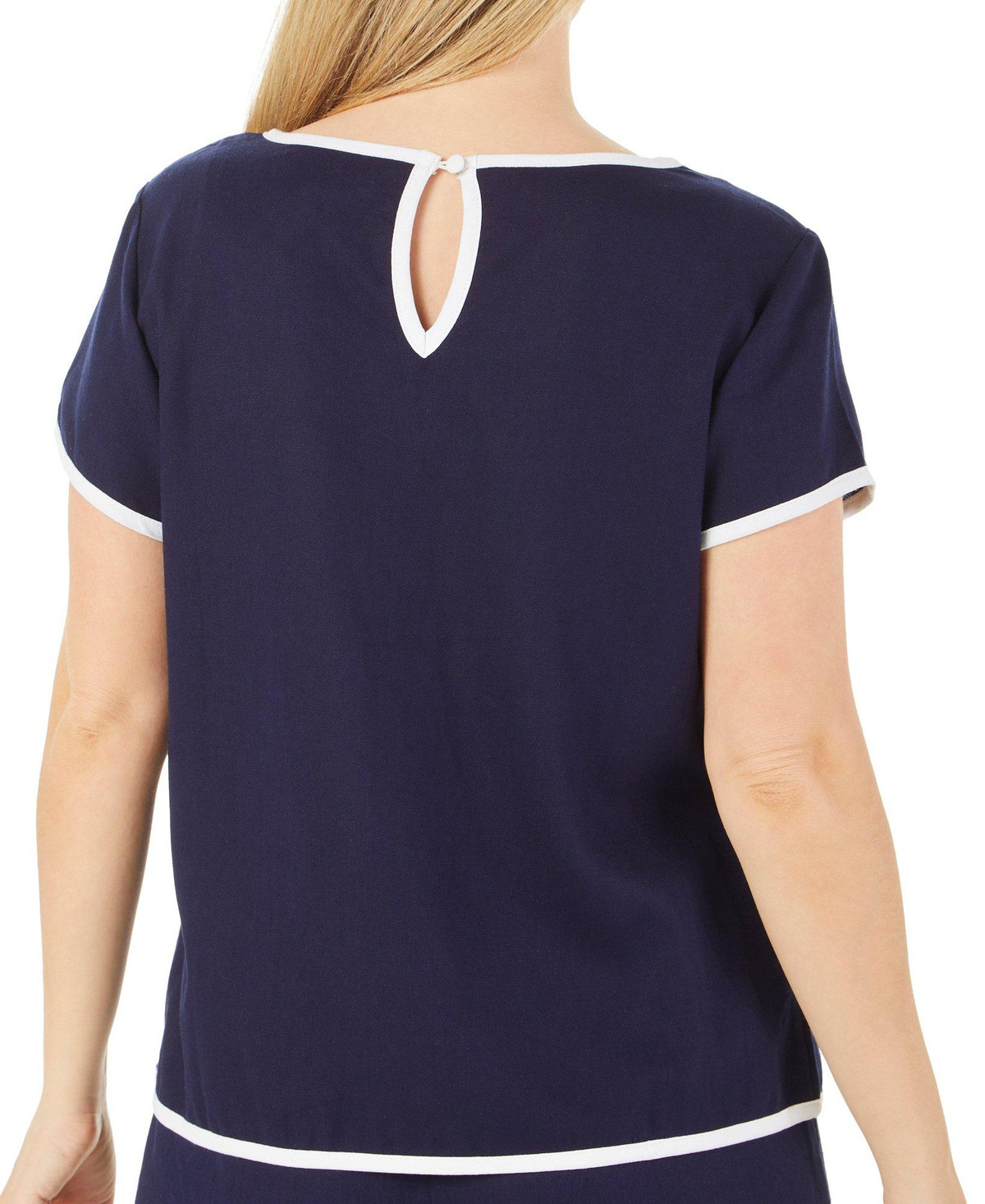 Introducing the Women’s Keyhole Short Sleeve Top, crafted from a blend of rayon and linen for a lightweight and breathable fit. This stylish top features a solid color with chic piped detailing, a back keyhole neckline, and short sleeves. With a length of 23 inches, it’s perfect for pairing with your favorite jeans or skirts for a casual yet elegant look.