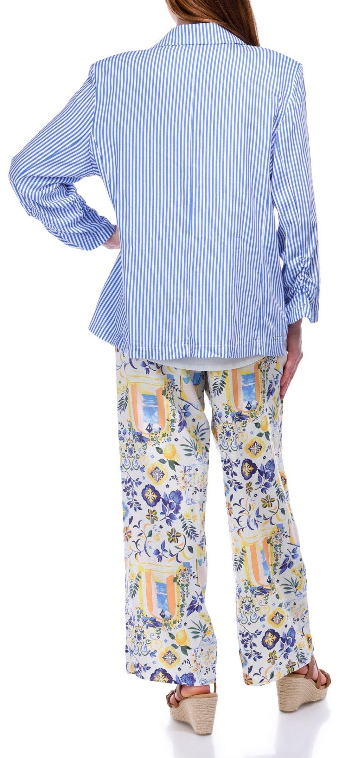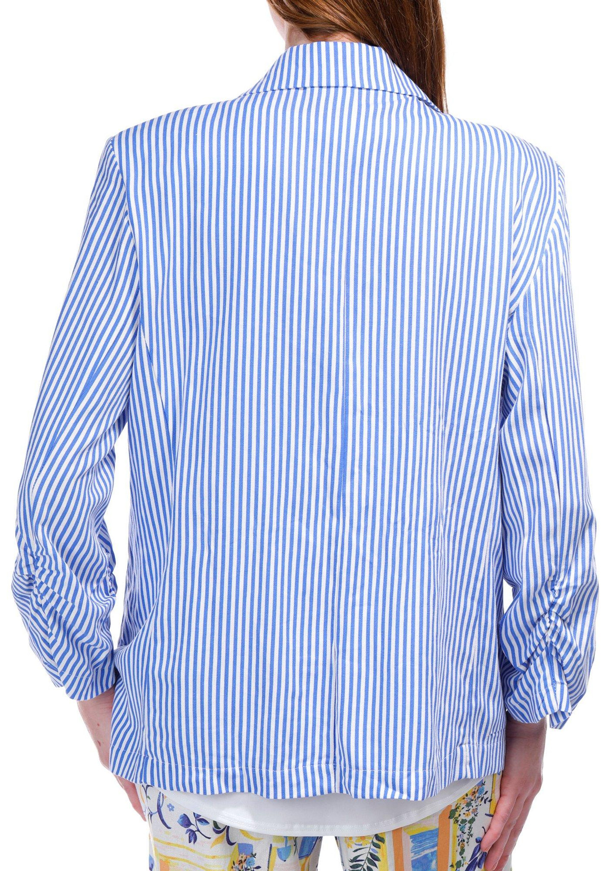 Step up your style game with this Long Sleeve Blazer Jacket. This sophisticated piece features patch pockets for a touch of practicality, while the ruched sleeve details add a modern twist. The padded shoulders provide a structured silhouette, ensuring you look sharp and confident. Perfect for both professional and casual settings, this blazer is a versatile addition to your wardrobe. Fabrication is 80% rayon and 20% linen.