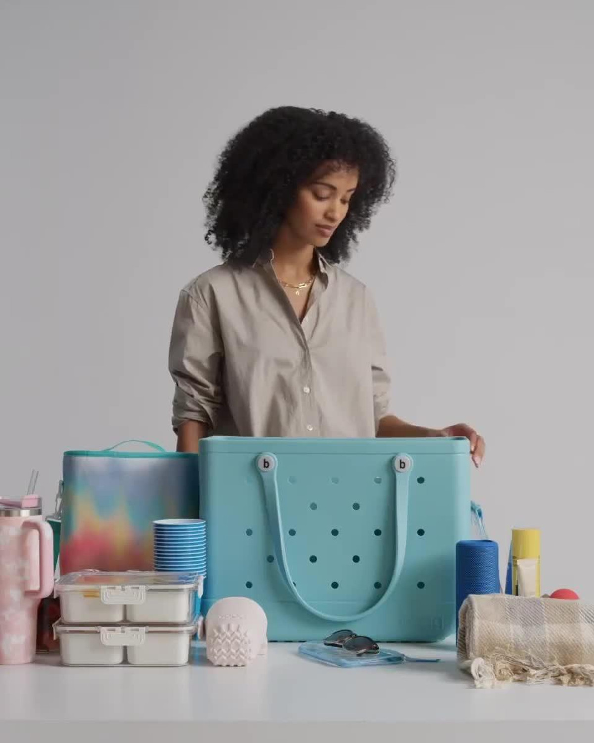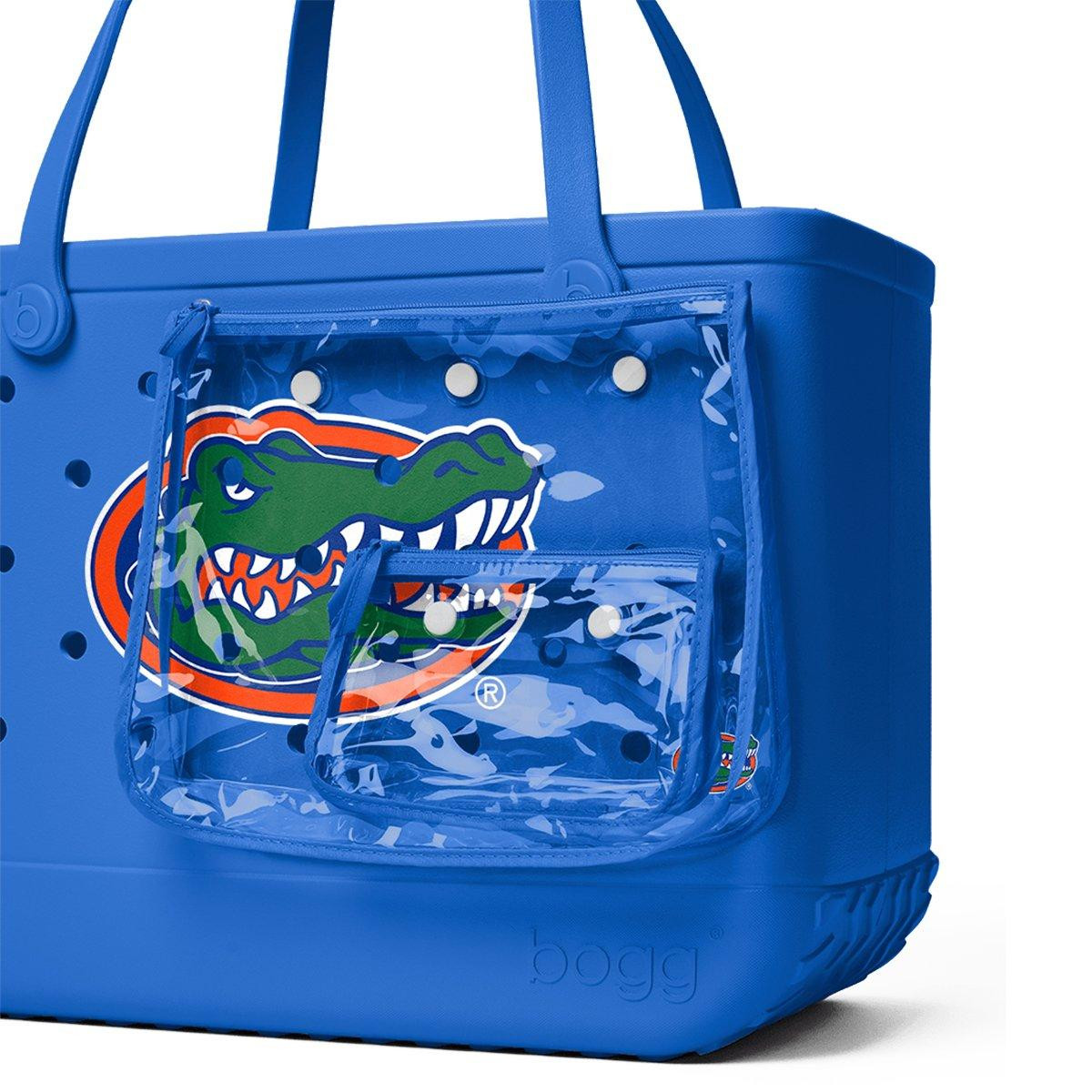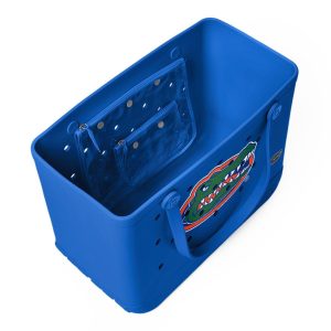 Prove your fan loyalty with help from the Bogg Bag Florida Gators Original Bag. The lightweight, flexible EVA construction offers water-resistant protection, and the 2 clear insert bags make it easy to organize your essentials. The 2 EVA handles provide simple carrying, and the team design shows off your fan spirit. 40-pound weight capacity. Measures: 9.5 in. W x 15 in. H x 13.5 in. D.