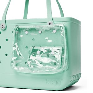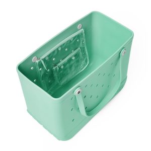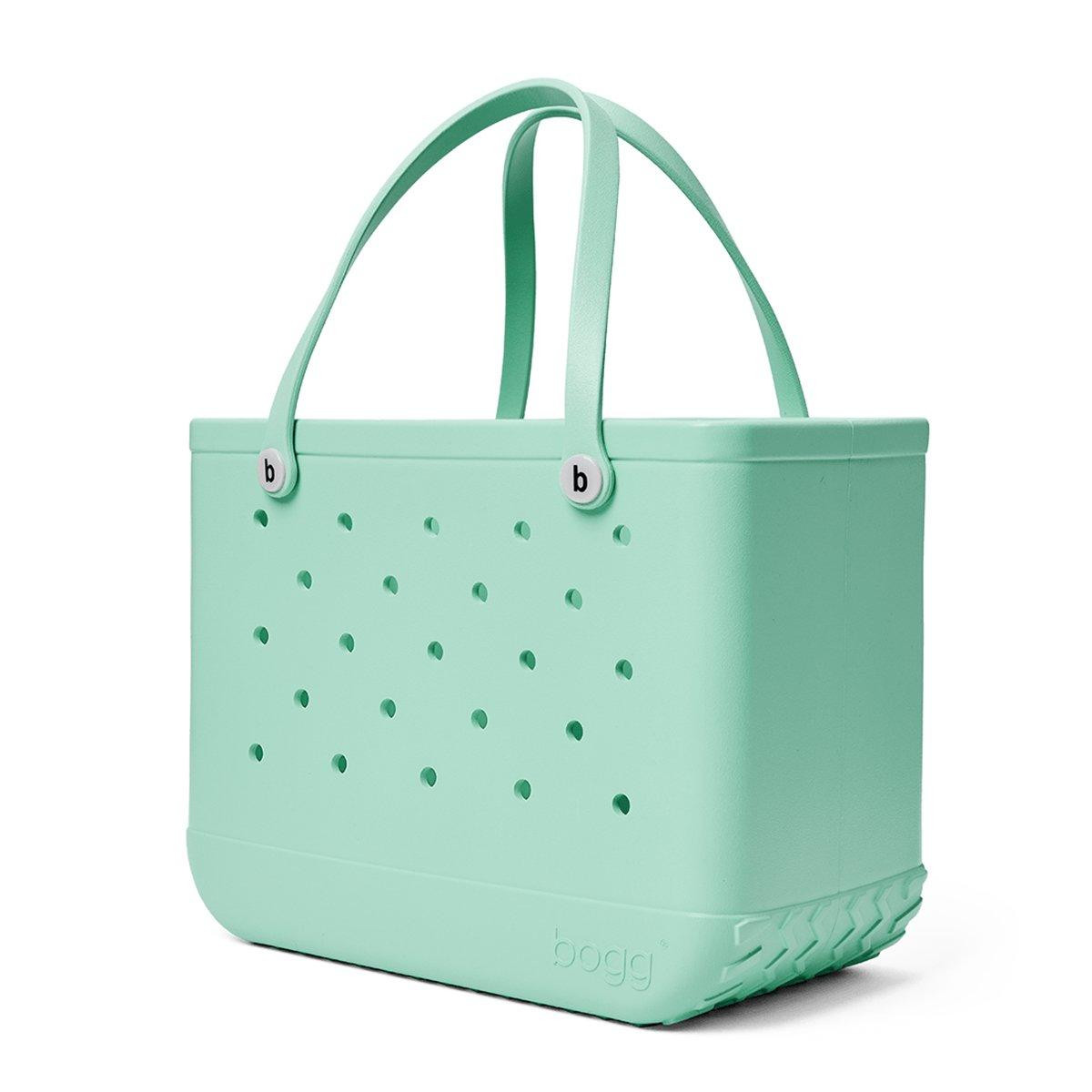 This Bogg Beach Tote Bag features a solid color design on a sturdy EVA fabrication with perforated sides, a durable pebbled bottom, and dual strap handles. Bag is durable, washable, sturdy, and tip-proof. Measures approximately 19 in x 9.5 in x 15 in.