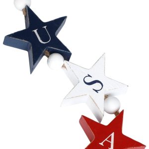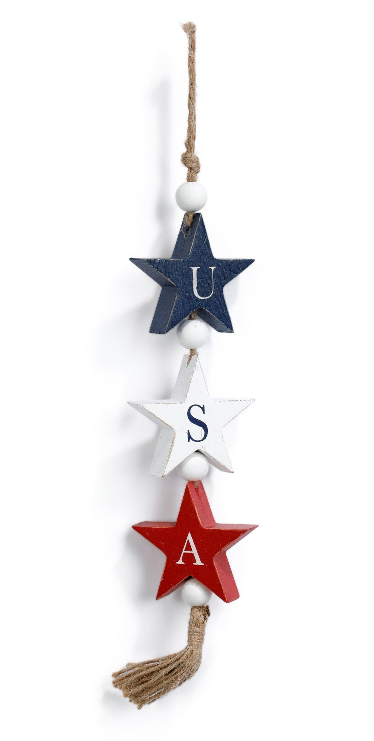 This delightful string of beads evokes a sense of national pride and unity, perfect for celebrating the United States with its vibrant colors and iconic map detail. USA decor, patriotic decoration, American pride, red white and blue, home decor, national symbols, July 4th decoration, Independence Day celebration, festive beads, decorative garland. Measures 33 in x 3 in.